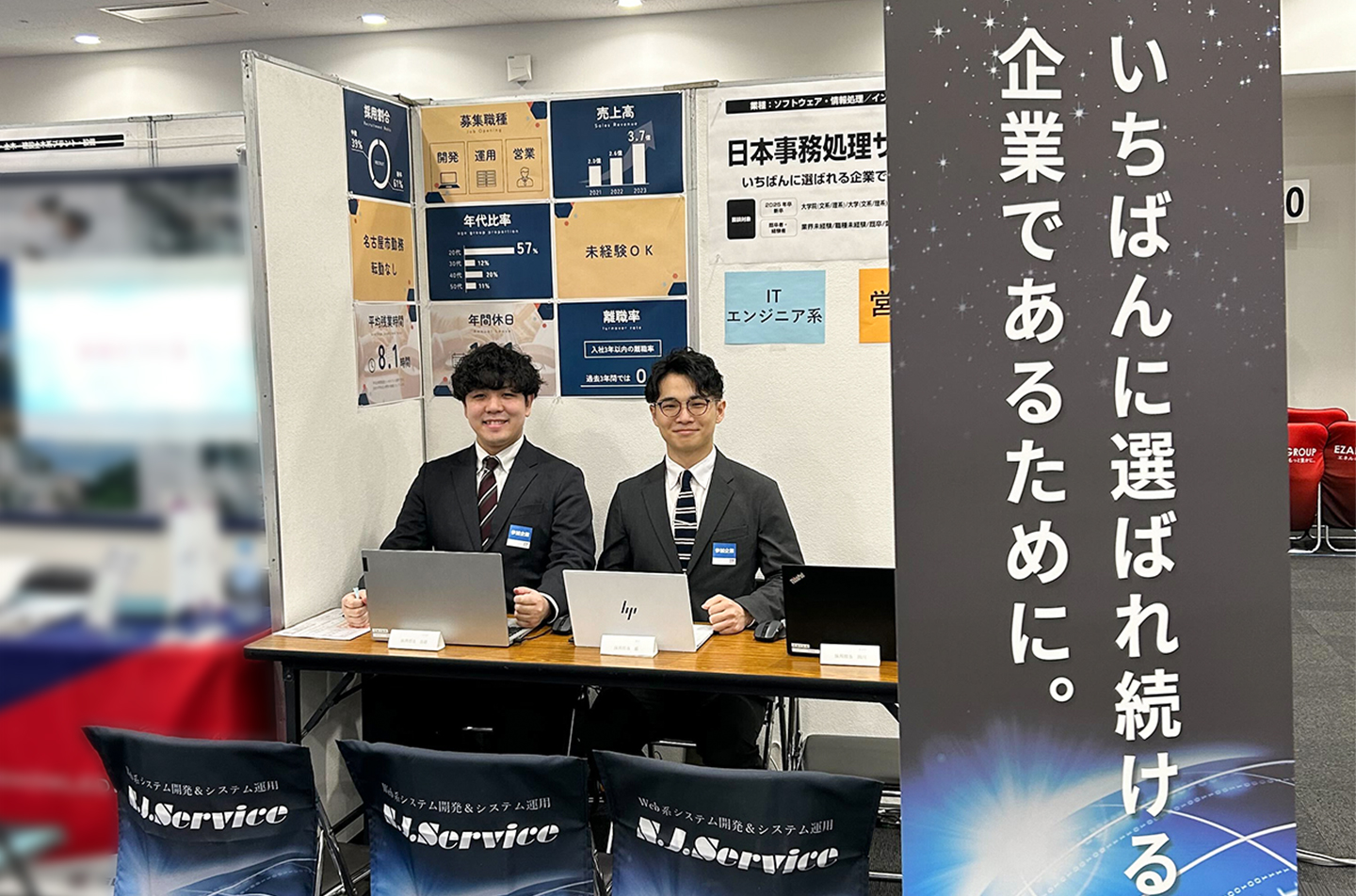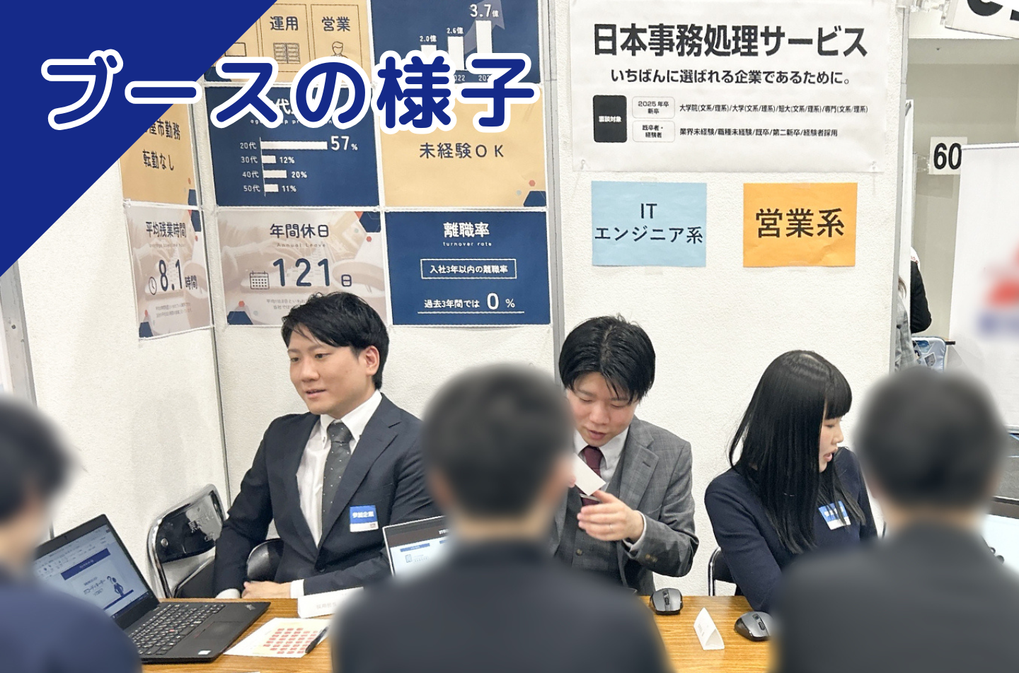 今回の出展では、弊社で募集している「システム開発職」「システム運用職」「ITコーディネーター営業」の3職種について、多くの方々に直接お話しする機会をいただきました。このような貴重な場を通じて、募集職種に興味を持ってくださった皆様との交流を深められたことを嬉しく思います。