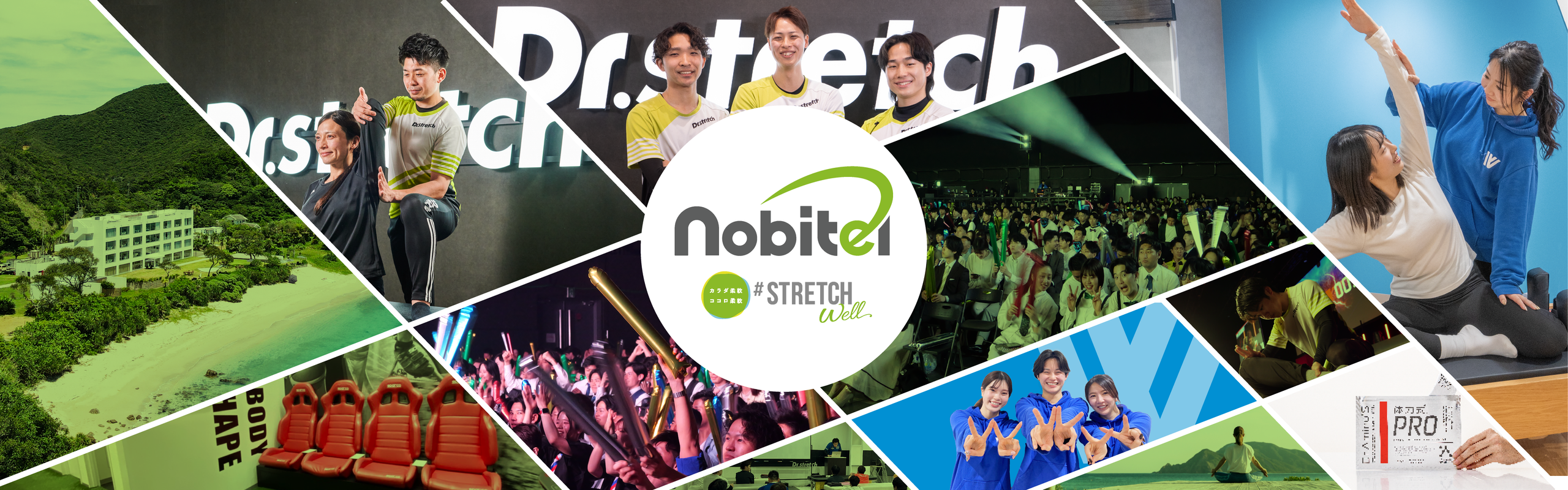 株式会社nobitel(ノビテル)は、国内No.1店舗数ストレッチ専門店「Dr.stretch(ドクターストレッチ)」をはじめ、世界自然遺産に登録された奄美大島最南端のウェルネスリゾート「THE SCENE(ザ・シーン)の運営など、健康やスポーツの分野を中心に幅広いサービスを提供しています。 若々しく健康に歳を重ねられるお手伝いをして、お客様の未来を大きくする。 そして、サービスを通してはたらく人の未来を大きくする。これを実現していきます。
