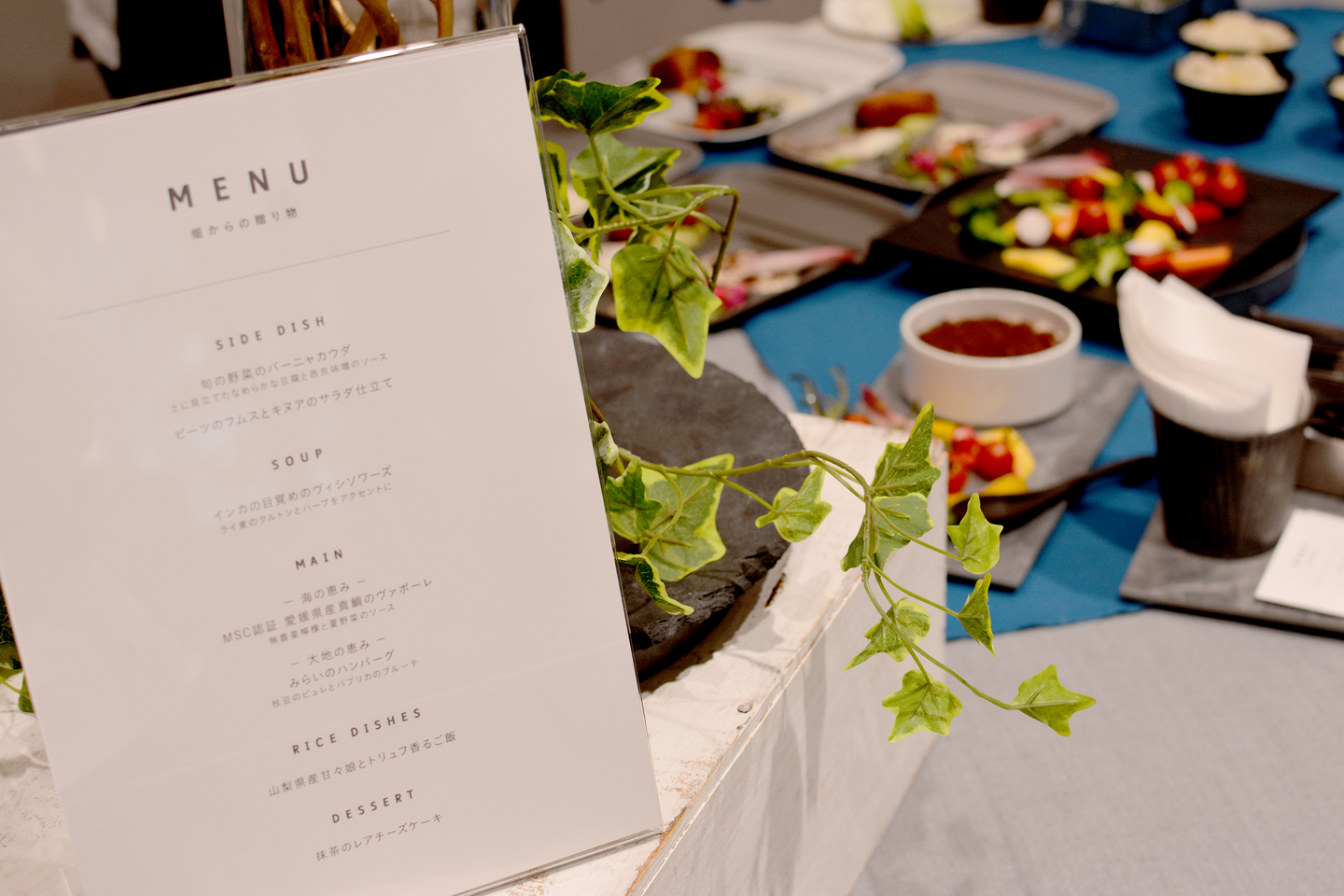 今回の「nonpi LUNCH」は、ノンピの魅力を最大限に伝えられるメニュー構成でご用意させてただきました。また、これらの料理はケータリングでお届けしているので、現地では調理せず盛り付けだけをおこなっています。