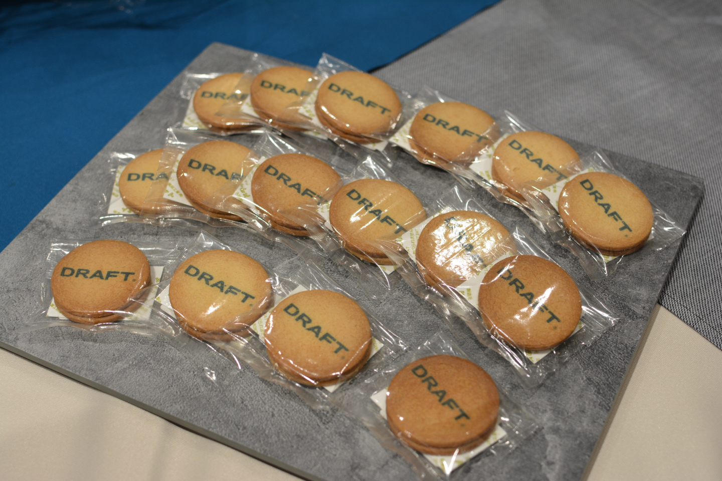 ちょっとした気持ち。DRAFT様のロゴを入れたオリジナルクッキー(大豆を使用したビーガン対応)もご用意させていただきました。こちらも喜んでいただきました!