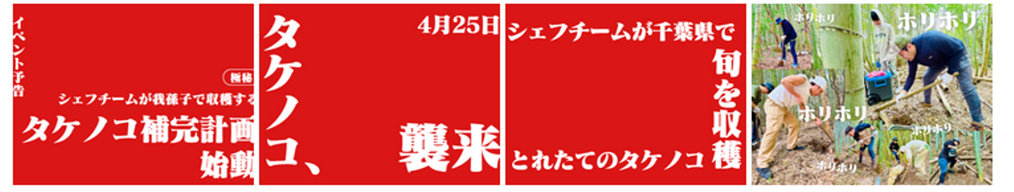 タケノコ掘りのイベントも予告POPを作成しシェフチームと共に創り上げることができ、社内の新たなマリアージュを生みました。