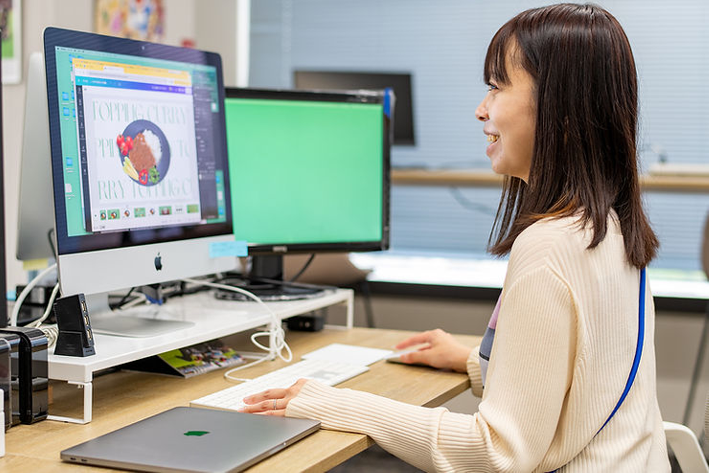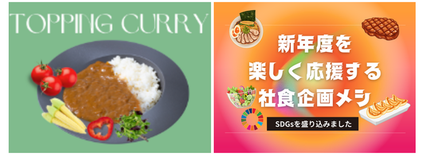 この日は、トッピング付きのカレーメニューのワクワク感をUPするためのデザインや新入社員を社食でお出迎えするためのイベントデザインを検討していました。