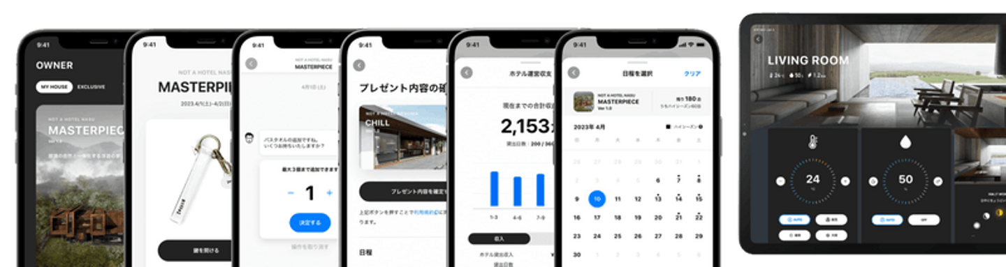 オーナー専用アプリ、ホテルゲスト専用アプリ