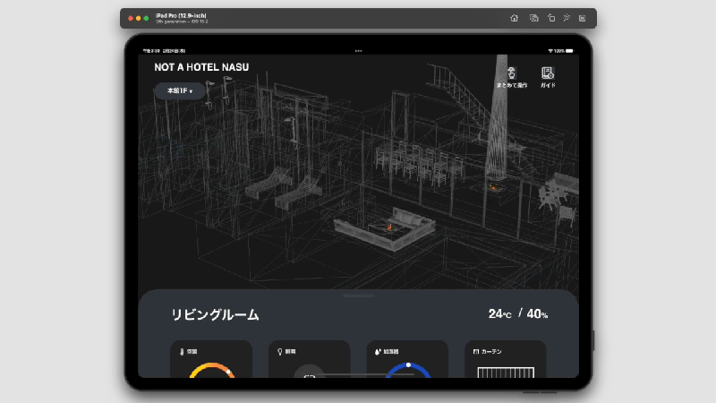 とはいえ既存のサービス、手法では実現が難しいものも多々あります。オーナー専用アプリやホテル運営ツールのためのいくつかのサービスは0→1で開発をしています。また既存のツールやサービス間との連携の仕組みも多く必要になります。例えばスマートホームでは日本でまだ一般的となっていない、KNXというネットワーク通信プロトコルを利用して開発しています。このようなプロトコルを選択できるところも、建物からつくるNOT A HOTELならではの強みだと思います。