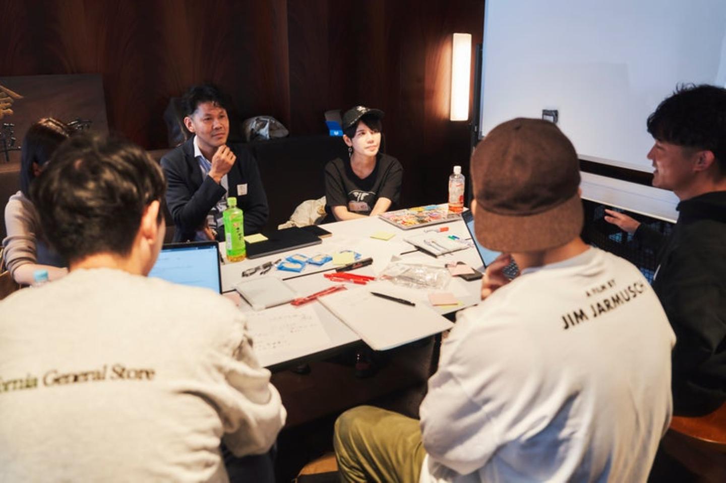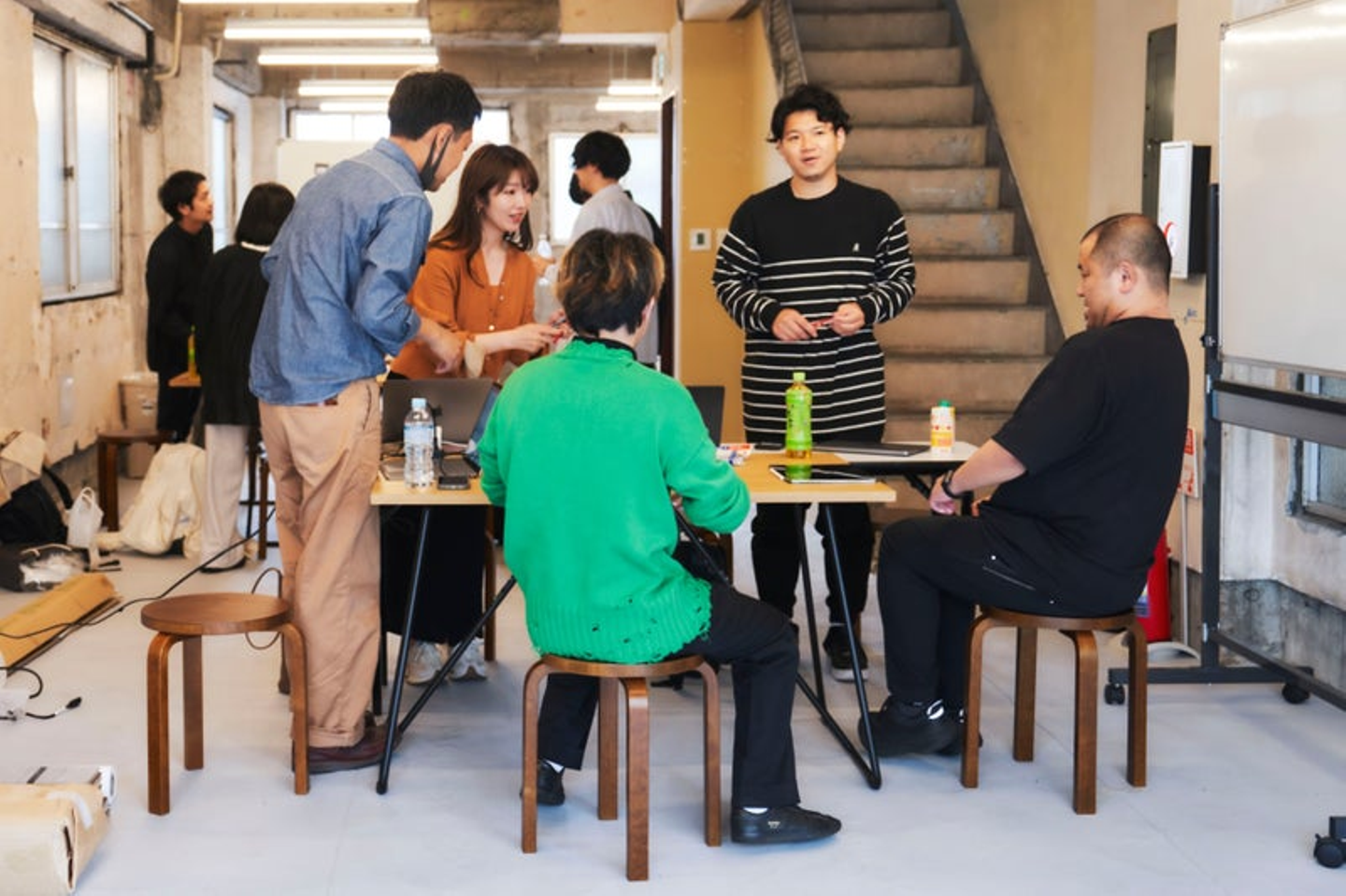 (画像解説: 2023年4月に初開催した全社でのアイディアソン。このチームには支配人、iOSエンジニア、経理、マーケティング、BizDev、エディターのメンバーが参加していました。NOT A HOTELならではの職種の交わりが、お互いへの良い刺激を生み出しています。)