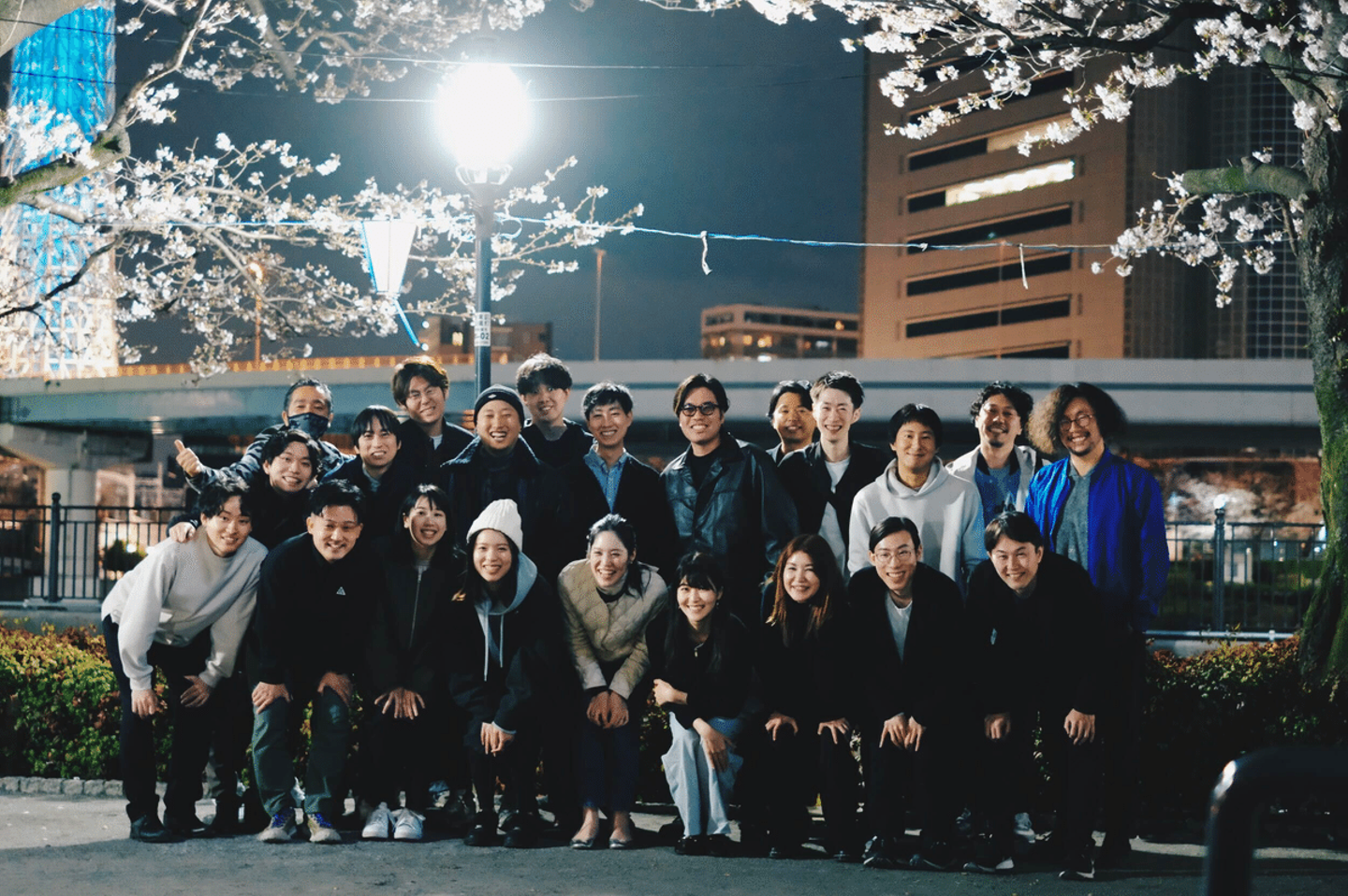 仕事終わりに建築・ソフトウェア・セールス・コーポレートなど、さまざまなチームの花見を楽しんだときの一枚