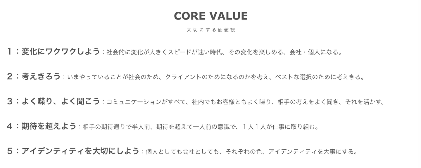 弊社にご興味を持ってくださる方は、是非このVALUEを参考にしてみてください。