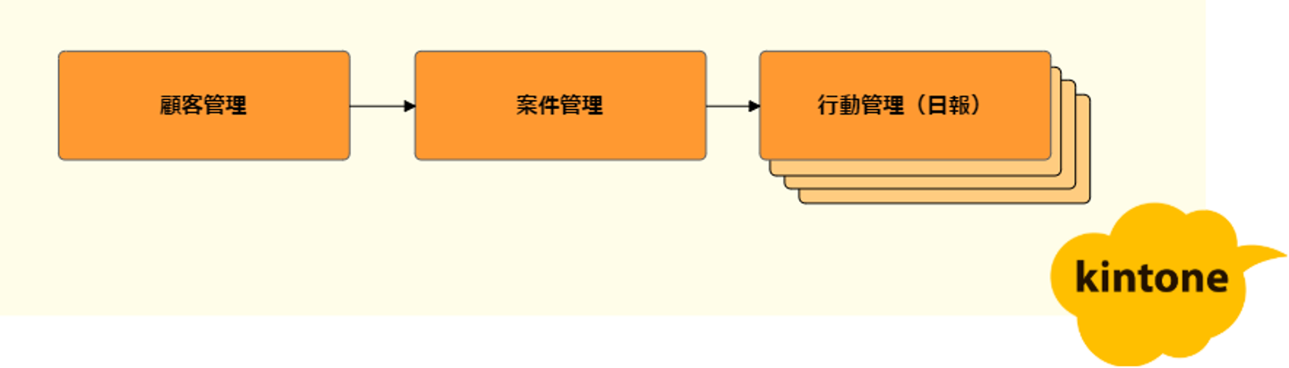 「顧客管理」「案件管理」「行動管理」と非常にシンプルな構成で、kintoneを導入・構築しました。