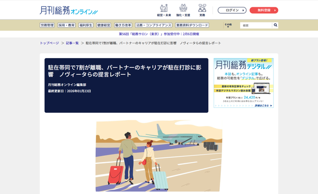 月刊総務オンラインに、駐在員パートナーのキャリア支援に関する提言レポートと、もとになった調査結果に関する記事が掲載されました。