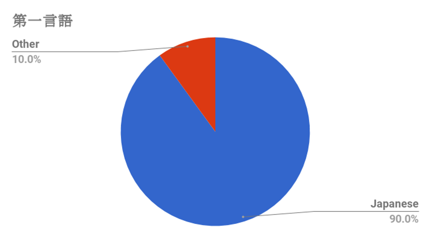 こちらは、弊社ならでは?なデータですが、社員の第一言語です。