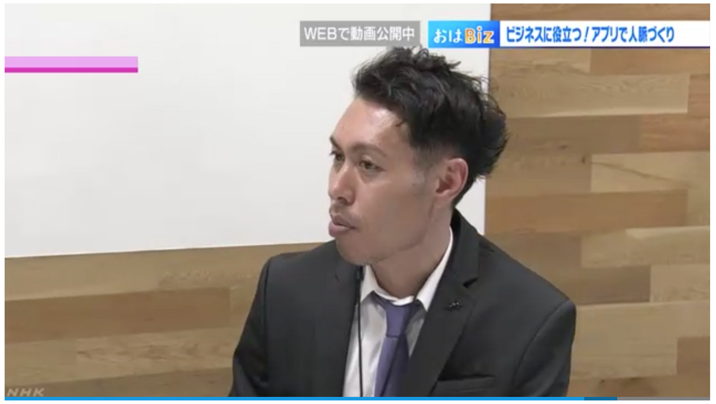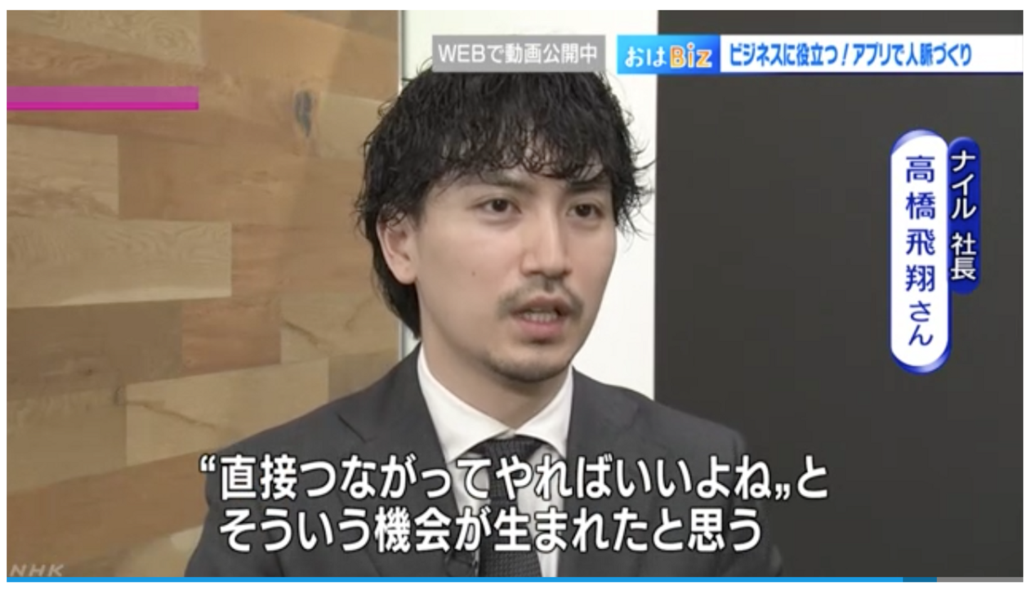 ※注:NHK おはBiz キーワード解説「ビジネスに役立つ アプリで人脈づくり」の動画内から画像を引用させて頂きました。