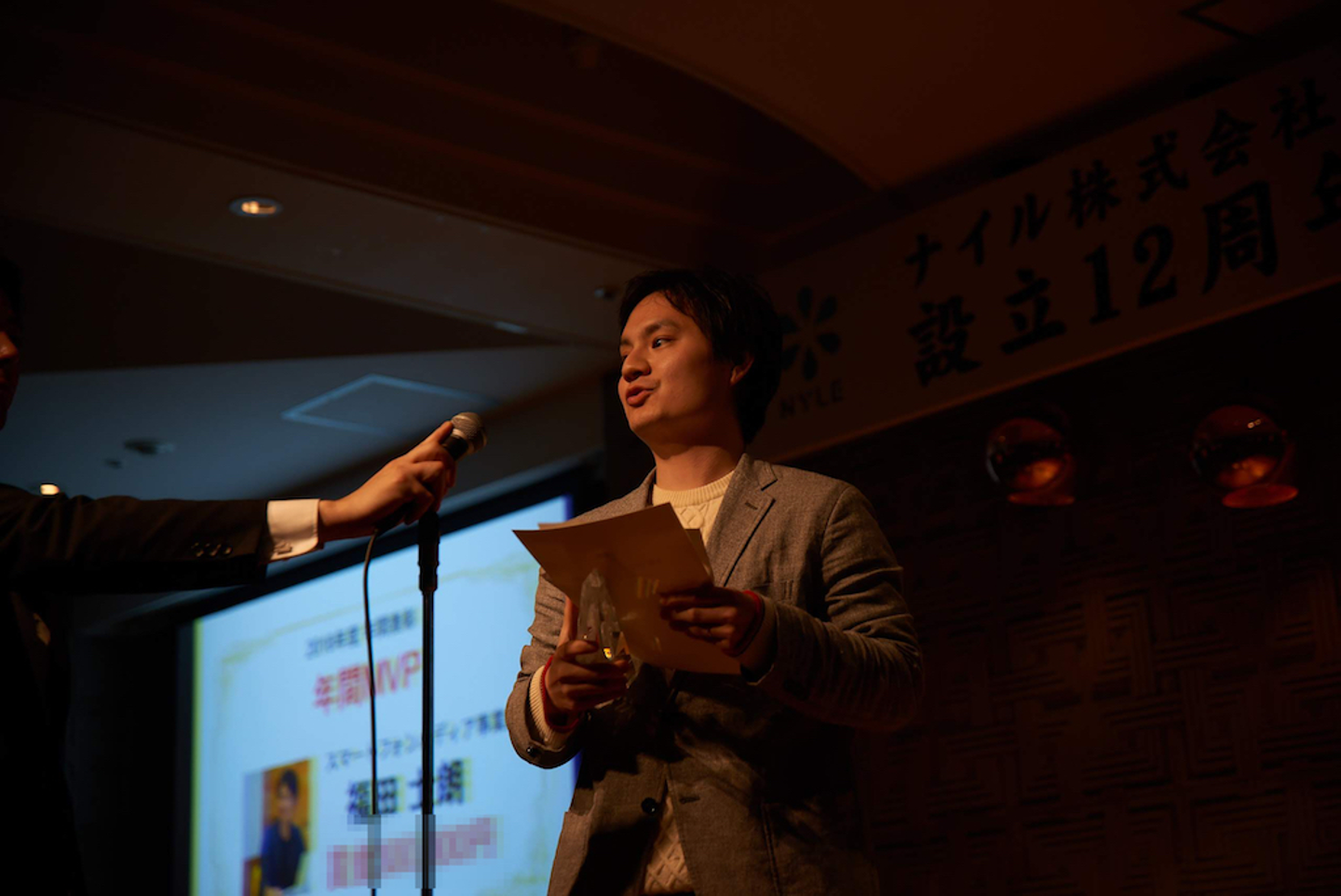 式の後半では、昨年度のMVPの発表。各部署で活躍をおさめたメンバーに表彰状とトロフィー、報奨金が授与されました。