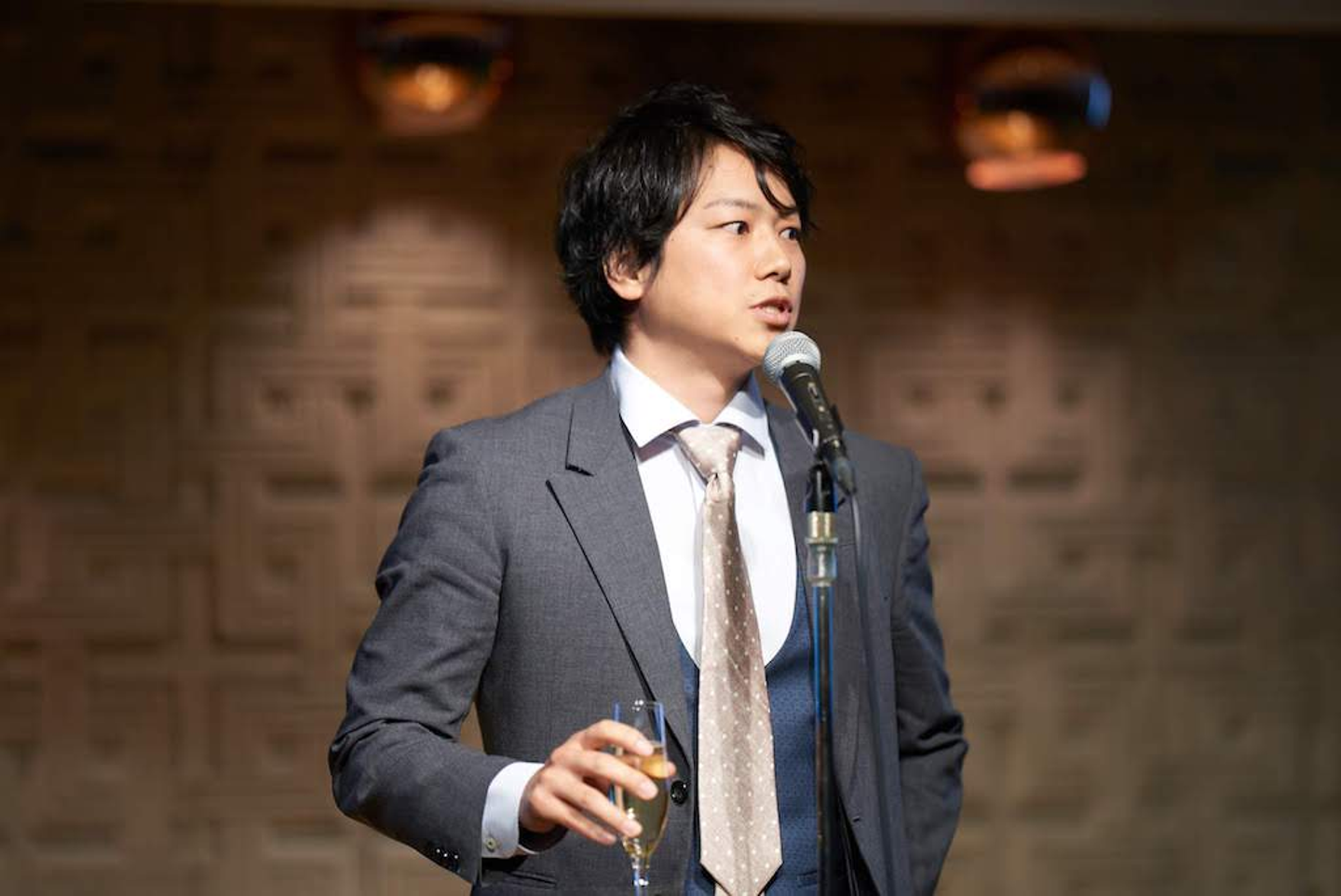 取締役 兼 スマートフォンメディア事業部責任者 高階乾杯の挨拶は、スマートフォンメディア事業部の事業責任者である高階から。昨年”全員企画・全員自走”をテーマに掲げ、ユニット制からプロジェクト制へと大きく組織体制を変えることでApplivを成長させることができた当事業部。