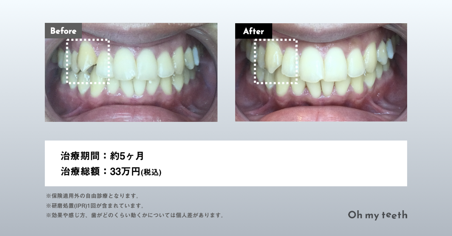 Oh my teethの期間も短く、価格も安いところが魅力に感じました。ワイヤー矯正だと値段もネックになってきますし、通院しないと次の工程に進めなかったり、期間も2〜3年くらいかかったりします。
