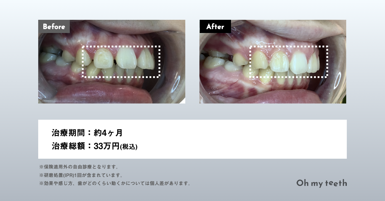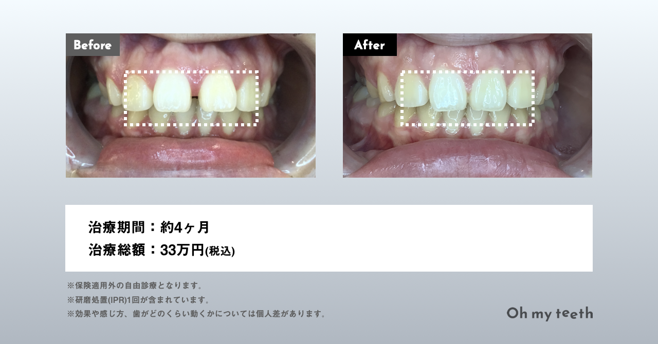 値段が安く、通院も少ないですし、短期間で終わるので Oh my teeth に決めました。