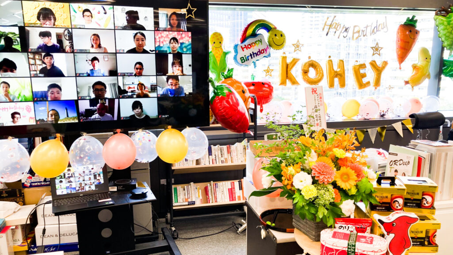 (▲)2020年 社長髙島のサプライズ誕生日の様子