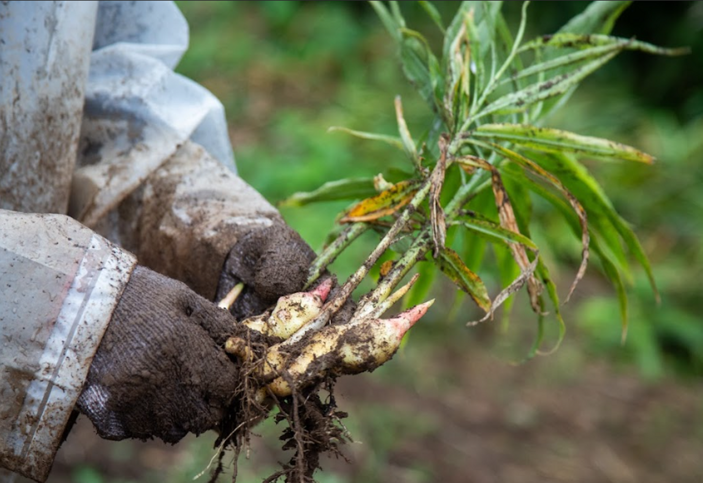 そこには種ショウガから立派に育ったショウガたちが!