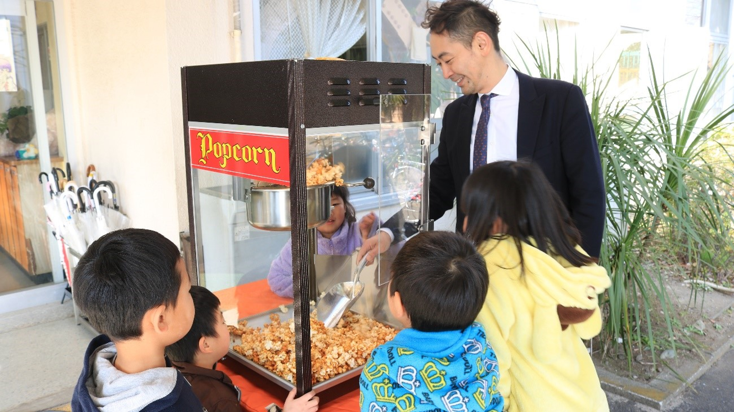 子供たちは、先生やスタッフにも「一緒に食べようよ」とポップコーンを分けてくれます。
