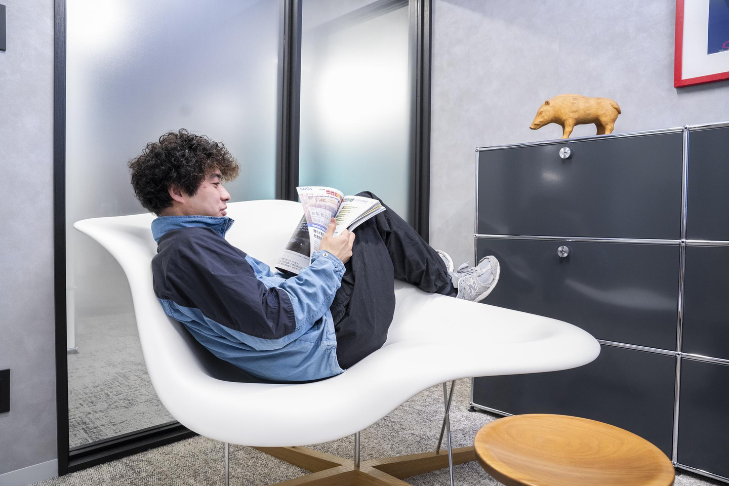 クリエイティブな仕事をするためには、こういったくつろぎ&談話スペースも重要ですよね!(なお、オンサイトはご覧の通り、服装は基本自由です)
