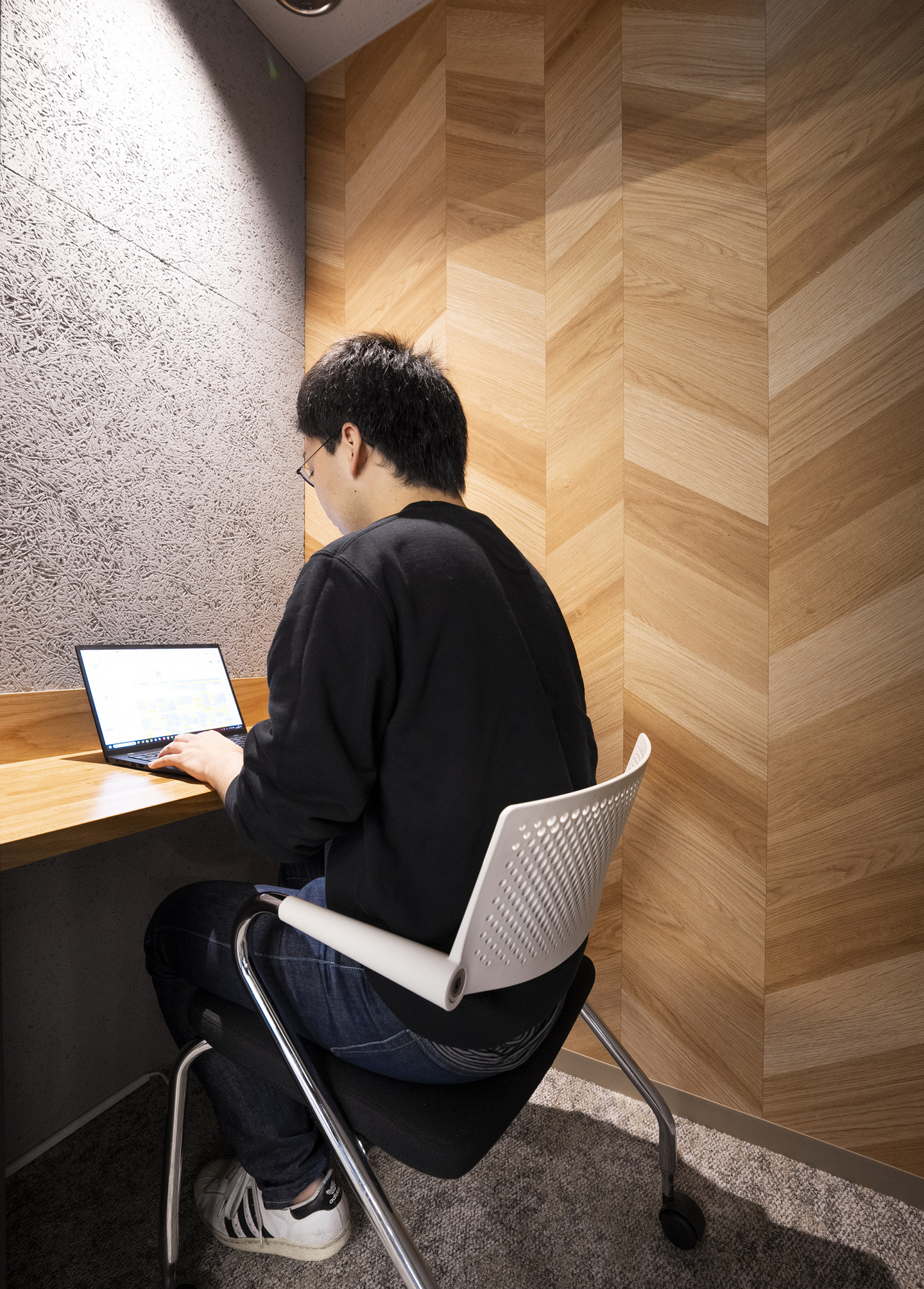 こちらはオンライン会議用の専用ブース。まわりの音を気にせず集中できます。