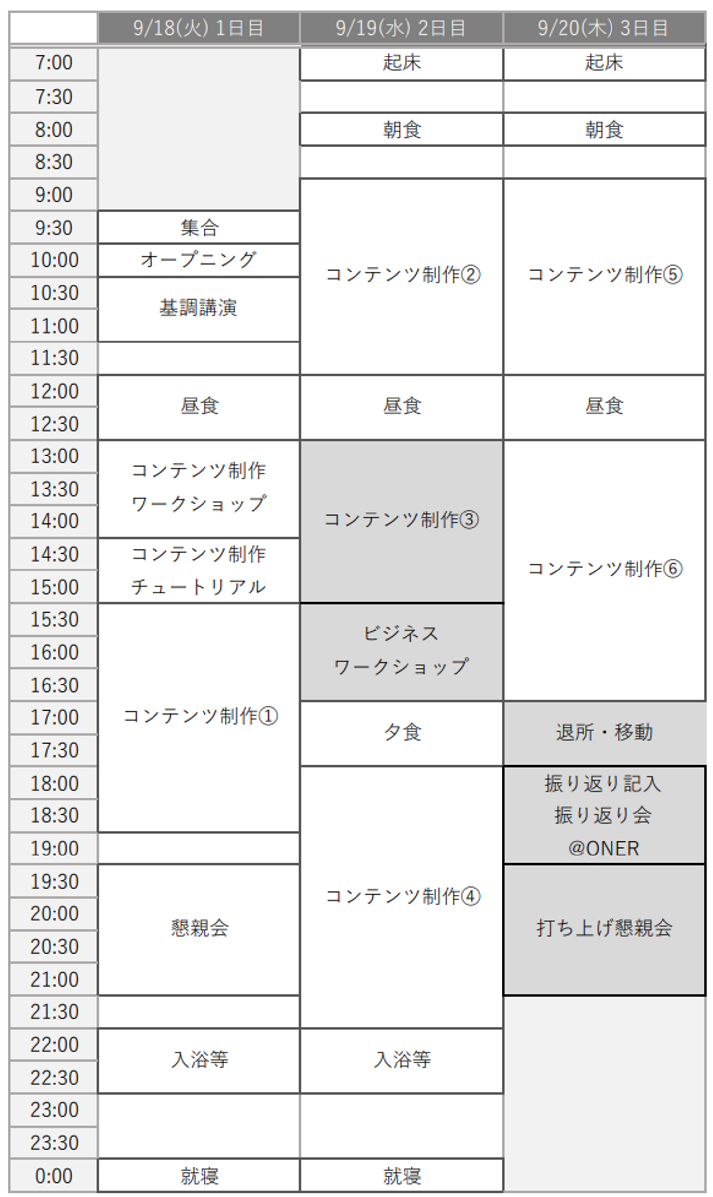 これを説明する前に、今回の合宿のタイムラインを見てもらえればと思います。