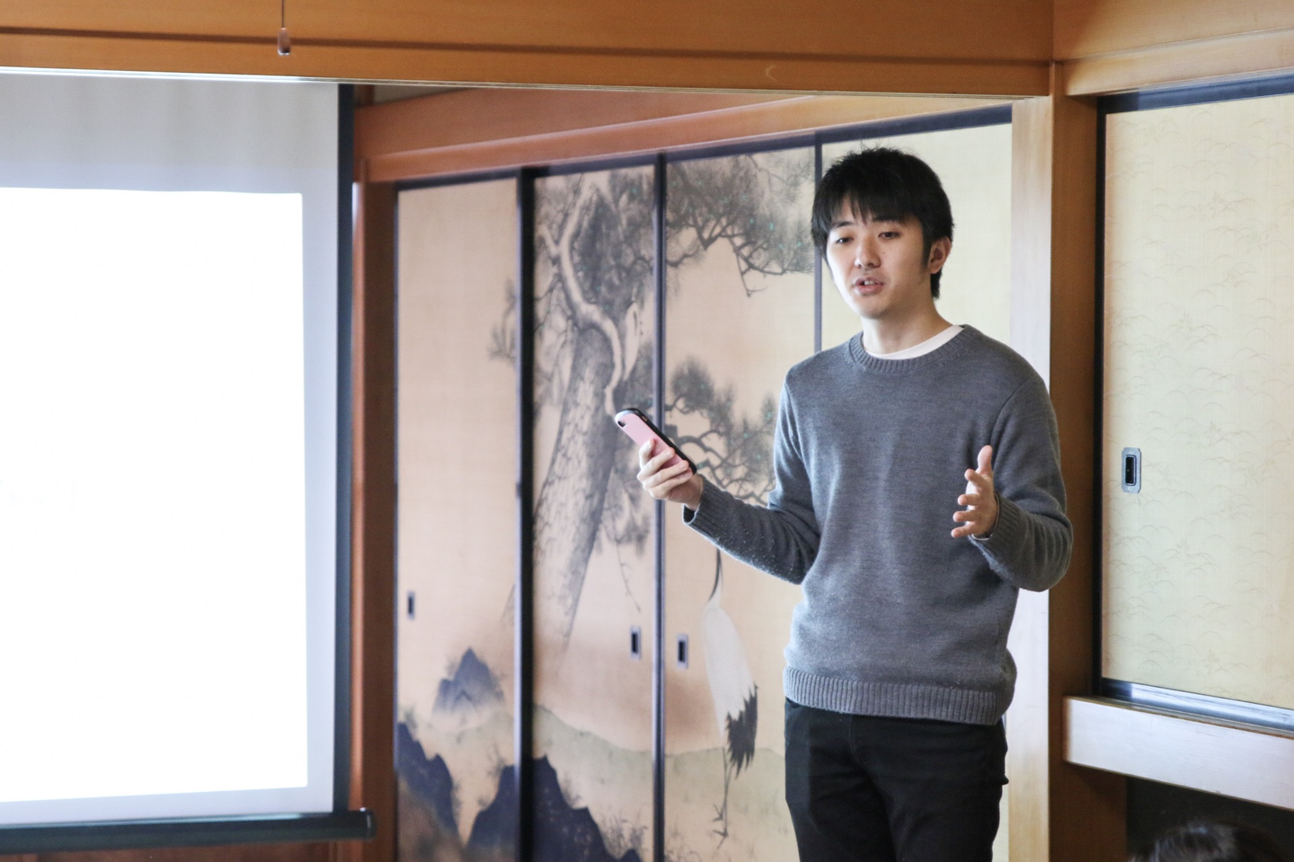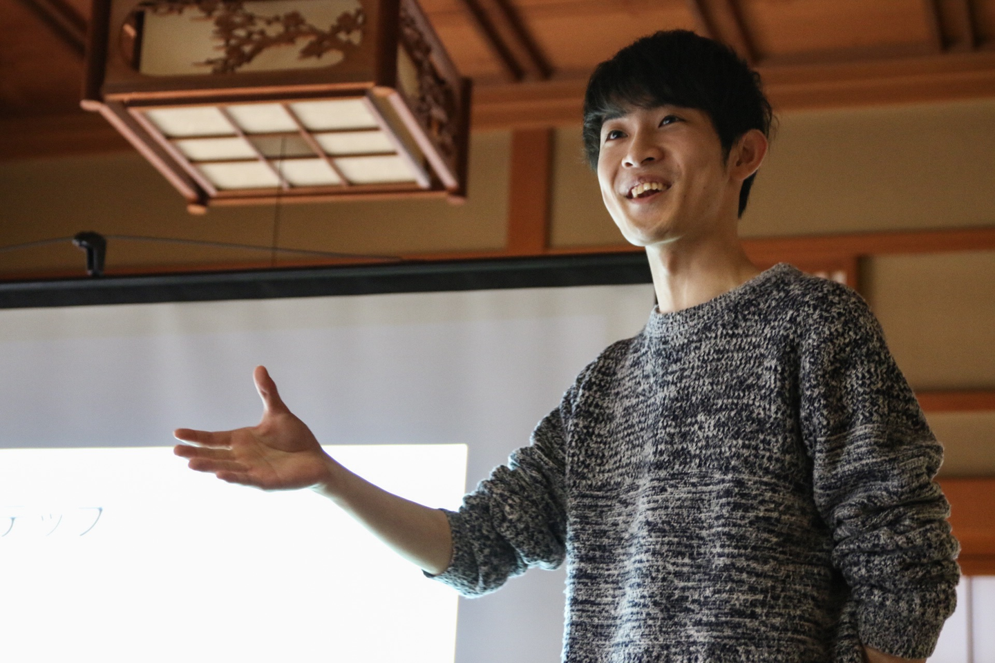 さて、2日目は夜中までプランニングしていて眠そうな人もいる中、弊社の教育事業責任者の綱島によるプレゼンからスタートしました。最終発表をよりよいものにするための講義です。