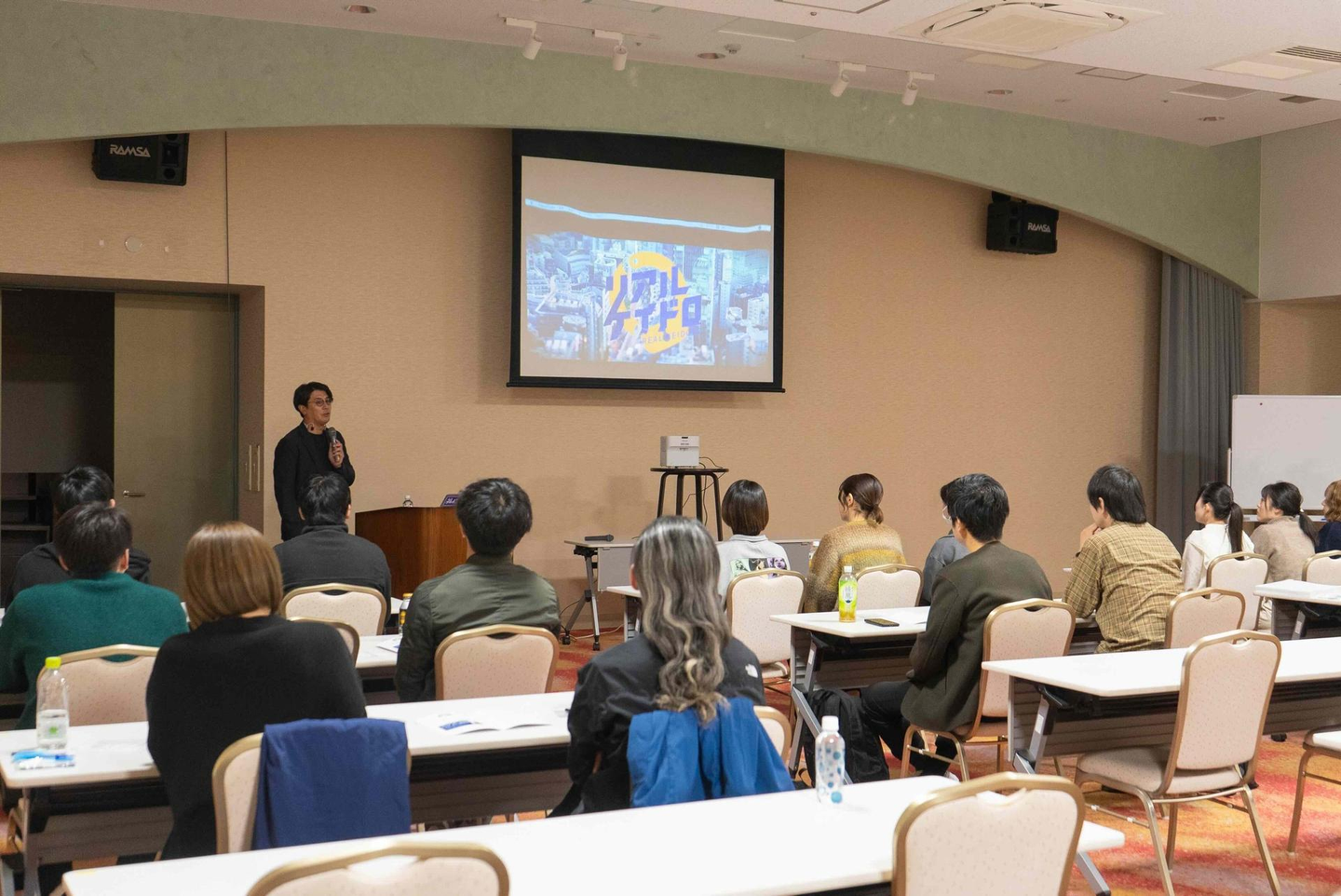 ゲーム終了後は、この「リアルケイドロ」を温泉道場の施設で開催するとしたらどうするか、をチームに分かれてワークを行い、発表。温泉道場は、店舗の企画・販促も全て自社で行っているのでそれを実践的に学べる機会になりました。街中を歩き回ったので皆さんヘトヘトです。。
