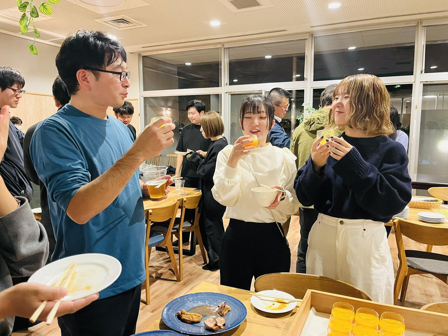 会場は大盛り上がりで幕を閉じ、立食ディナーも開催。ただのディナーではなく、来期以降に店舗で行うフェアやシーズンメニューの試食会も同時に行われました。楽しく、本気でそして生産性高く、温泉道場のモットーでもあります。