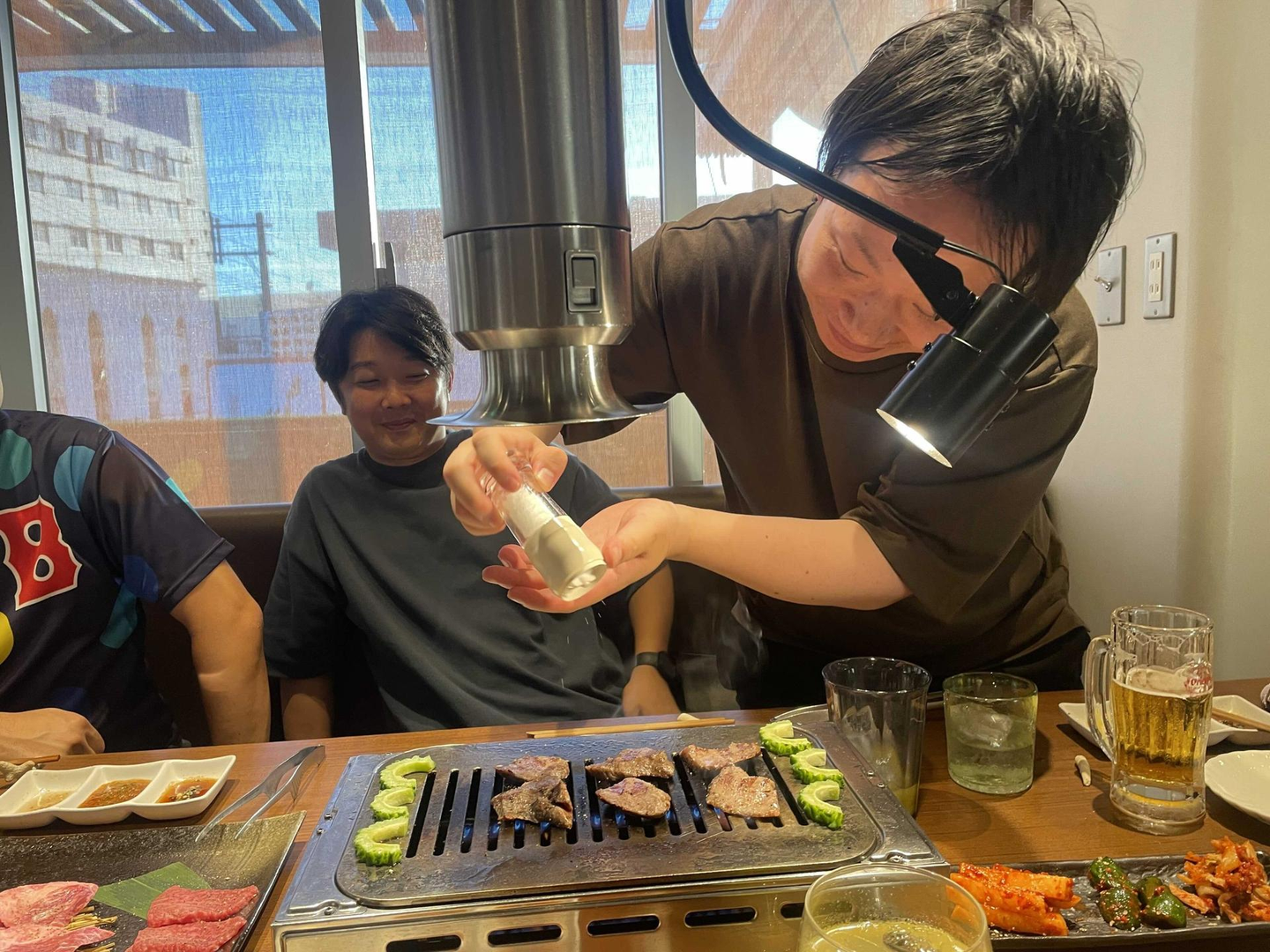 石垣島といえば「石垣牛」ですよね。1日目の最後は「石垣牛CHAN」にて、石垣牛の焼肉をいただきました。食べては商談、商談しては食べ…、暑さと食満載の1日目が終了しました。