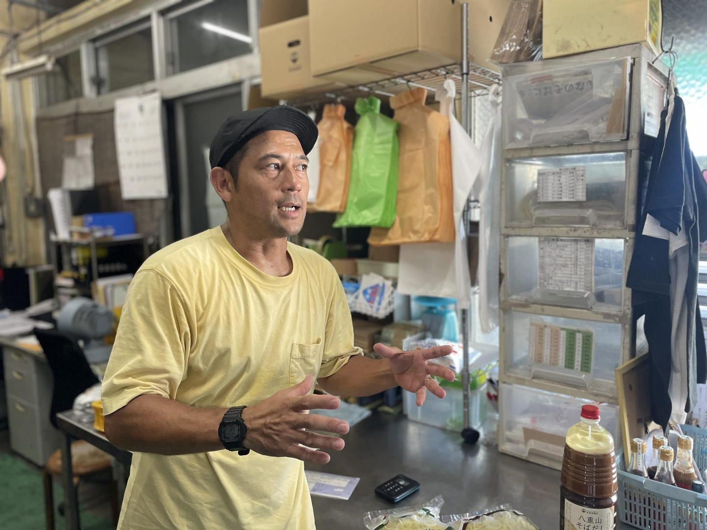 次は「八重山そば」の食材を調達しに「金城製麺所」(八重山そばメーカー)と「かみやーき小(グワー)」(かまぼこ店)へ。金城製麺所は1972年創業の石垣島の製麺所です。