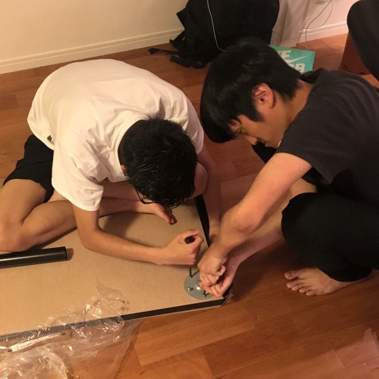 デスクの作成に取りかかっていた僕と社長のO.Tさん。ここの工程で足を一本壊してIKEAのもろさを必死に訴えていました。。笑 その後責任を取り隊長と再びIKEAへ!