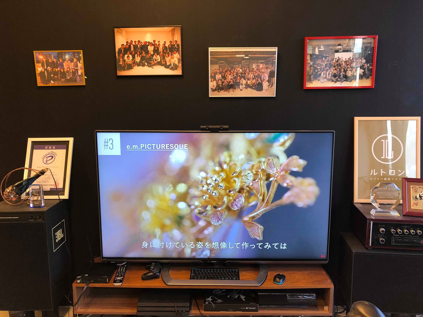 ソファーの向かい側ではルトロンの動画が流れており、上には