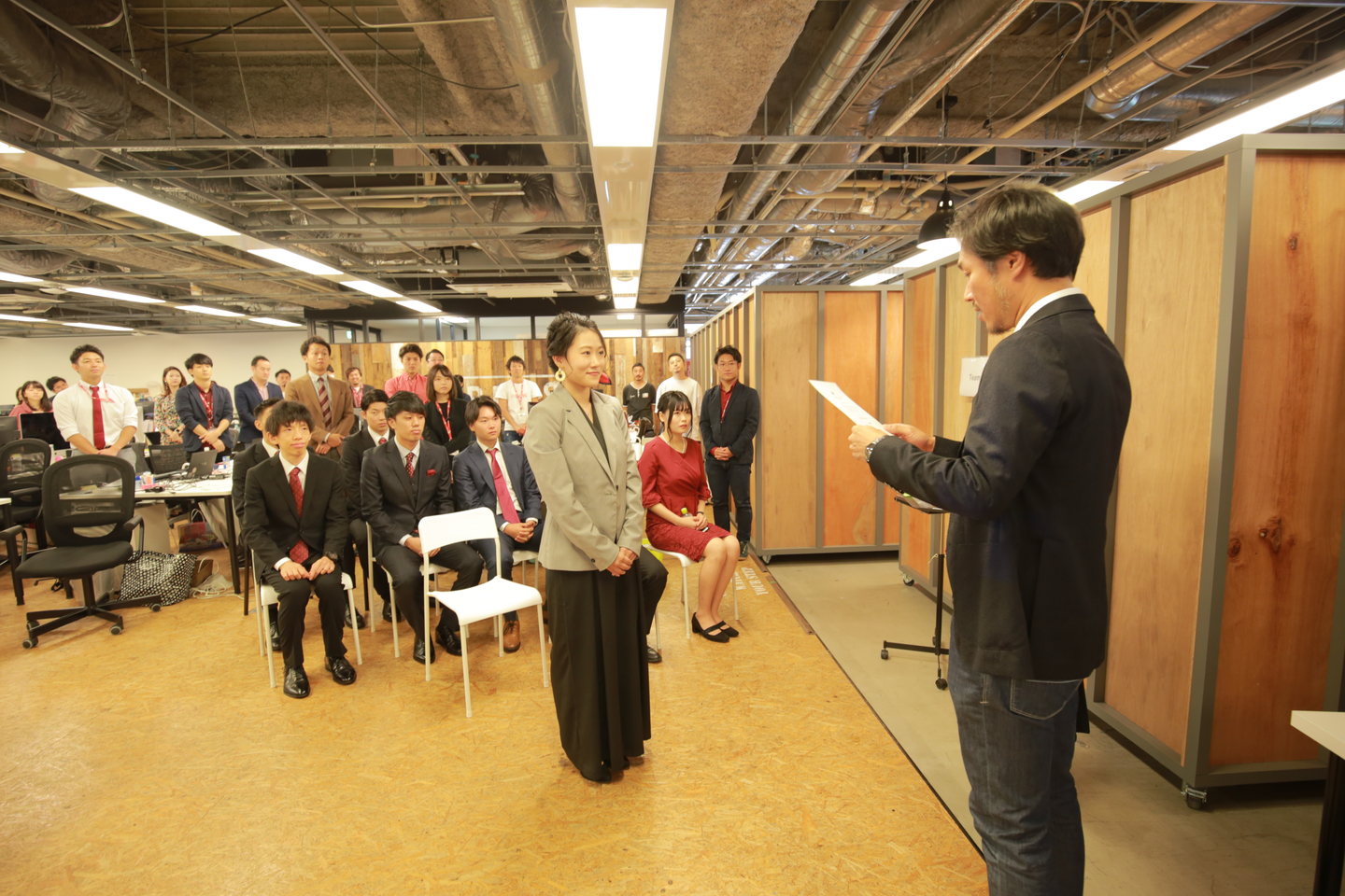 内定証書授与式では、ひとりひとりに対して代表の髙松より直接証書が授与されました。