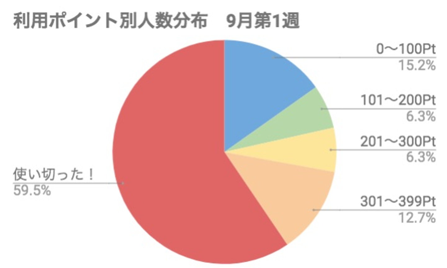また約6割のメンバーが手持ちの400ポイントを使い切り、感謝いっぱいな1週間を過ごしたようです。なかには沢山感謝を送って、途中でポイントが尽きてしまったという人も笑