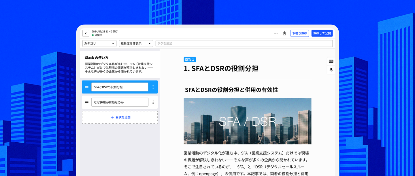 「そうです。openpageのDSRは、顧客への提案内容やコミュニケーションの細部まで直接改善します。単なる管理ツールではなく、営業活動そのものを加速する仕組みを作ったんです」