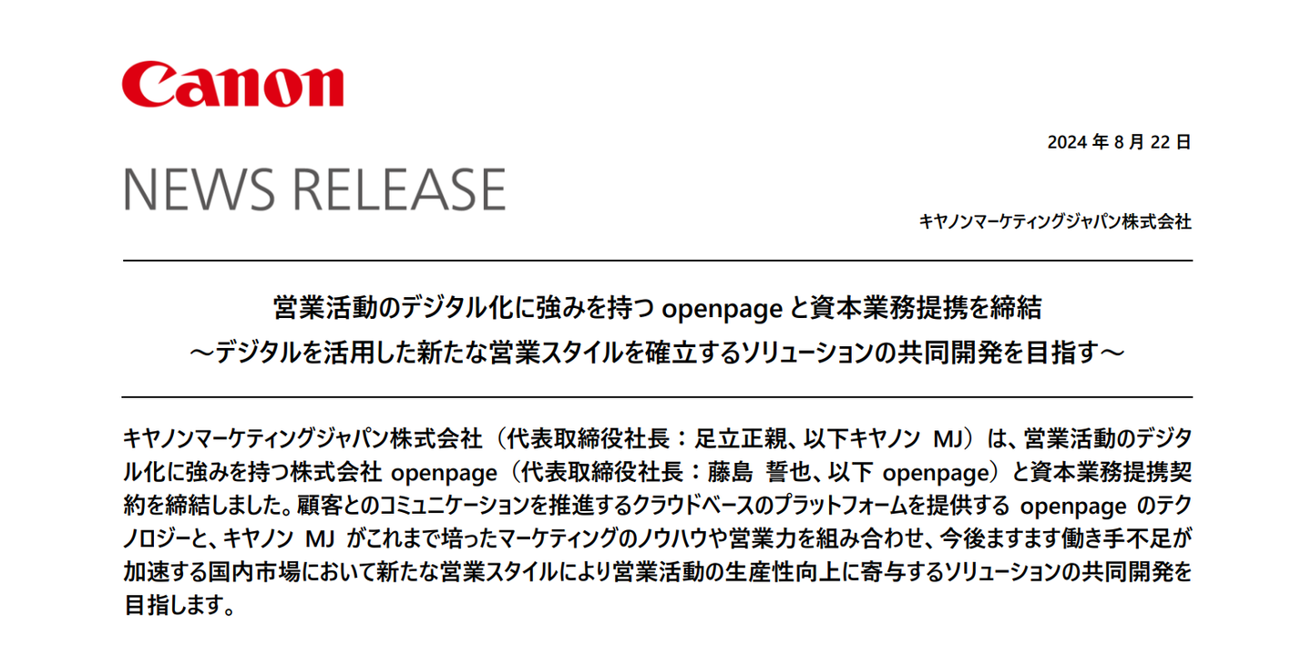 ――キヤノンMJとの資本提携について詳しく教えてください。この提携はopenpageにとってどのような意味があるのでしょうか?