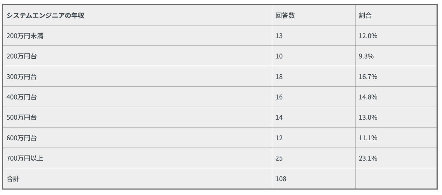 システムエンジニアの年収について、弊社の独自アンケートによると、次のような結果が出ています。