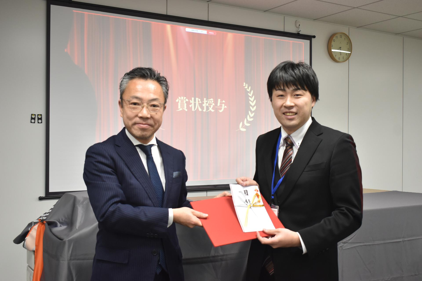 優勝したのは開発2部 5グループ&7グループ。代表者のNさんは「今回のInnovationがまず第一歩だと思うので、ここからがスタートです」とみんなを刺激する一言をくれました!籏持社長からも「新しい技術やアイデアを生み出すだけでなく、それを現実の価値として社会に届けることが大切」と身が引き締まる言葉をもらいました!