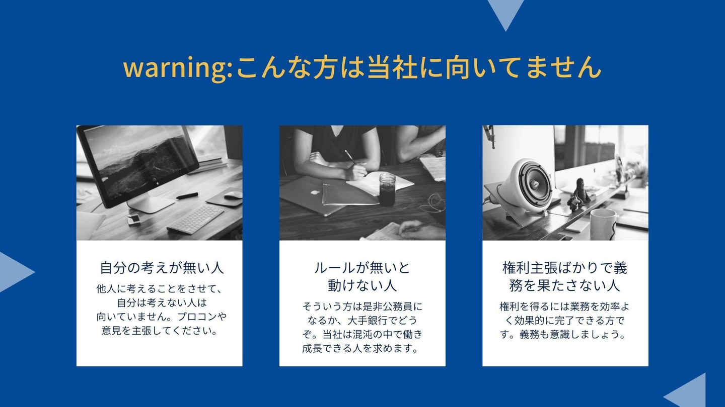 という方には当社は向いています。別に学歴は何もこだわっていません。