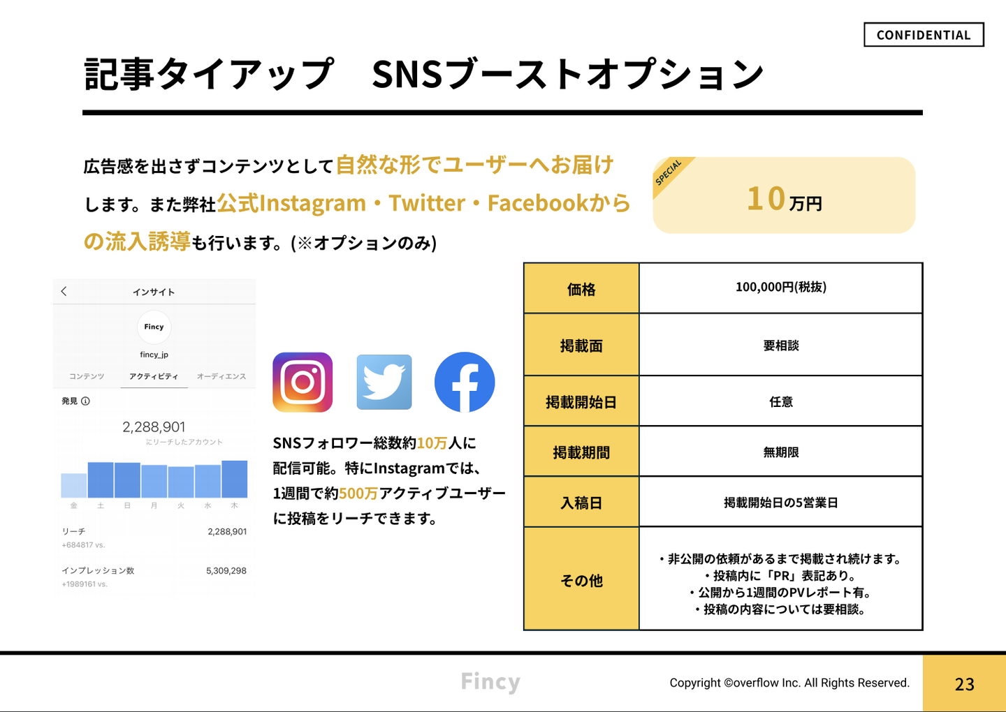 そうですね、4月から開始して、4ヶ月で7.5万フォロワーまで伸ばせることができました。営業資料も自分で作って、広告の商品化も進めています。