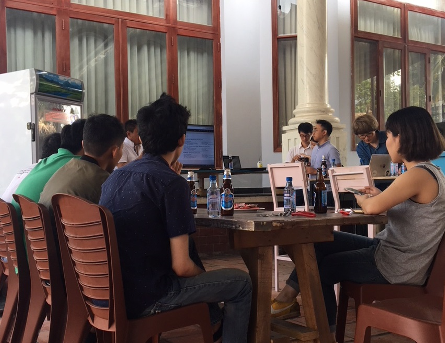 パスカリア・アジア社の社屋は敷地内のプールサイドにカフェ併設というリッチな環境なのですが、そちらでキックオフを開催しました。会社紹介、 プロジェクトの目的や計画、そしてプロジェクトメンバー全員の自己紹介をシェアしました。当日から参加できない方もリモートでご挨拶いただき、趣味などに加えそれぞれがこのインターンシップを通して得たいものなどを知ることができました。