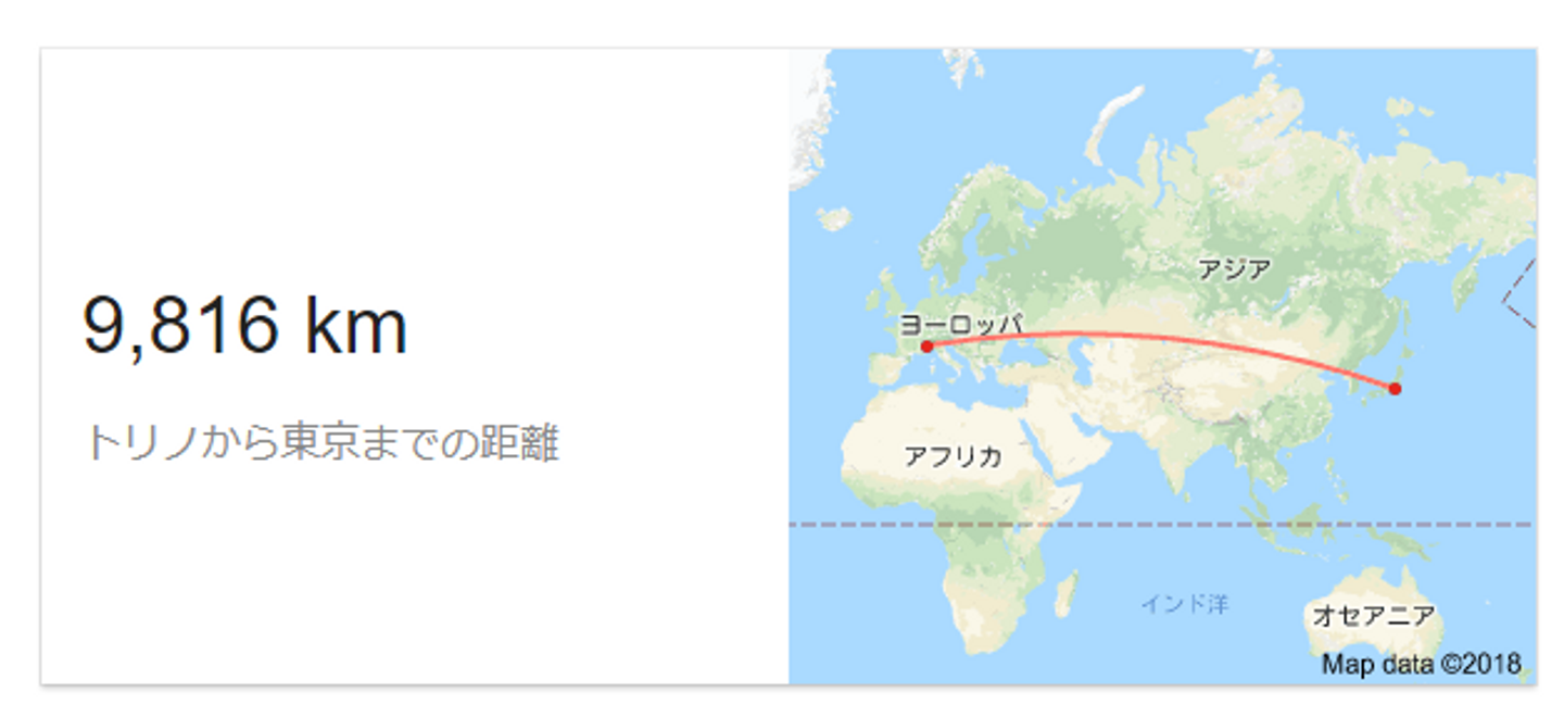 トリノから東京までは、なんと9,816㎞あるんですね!