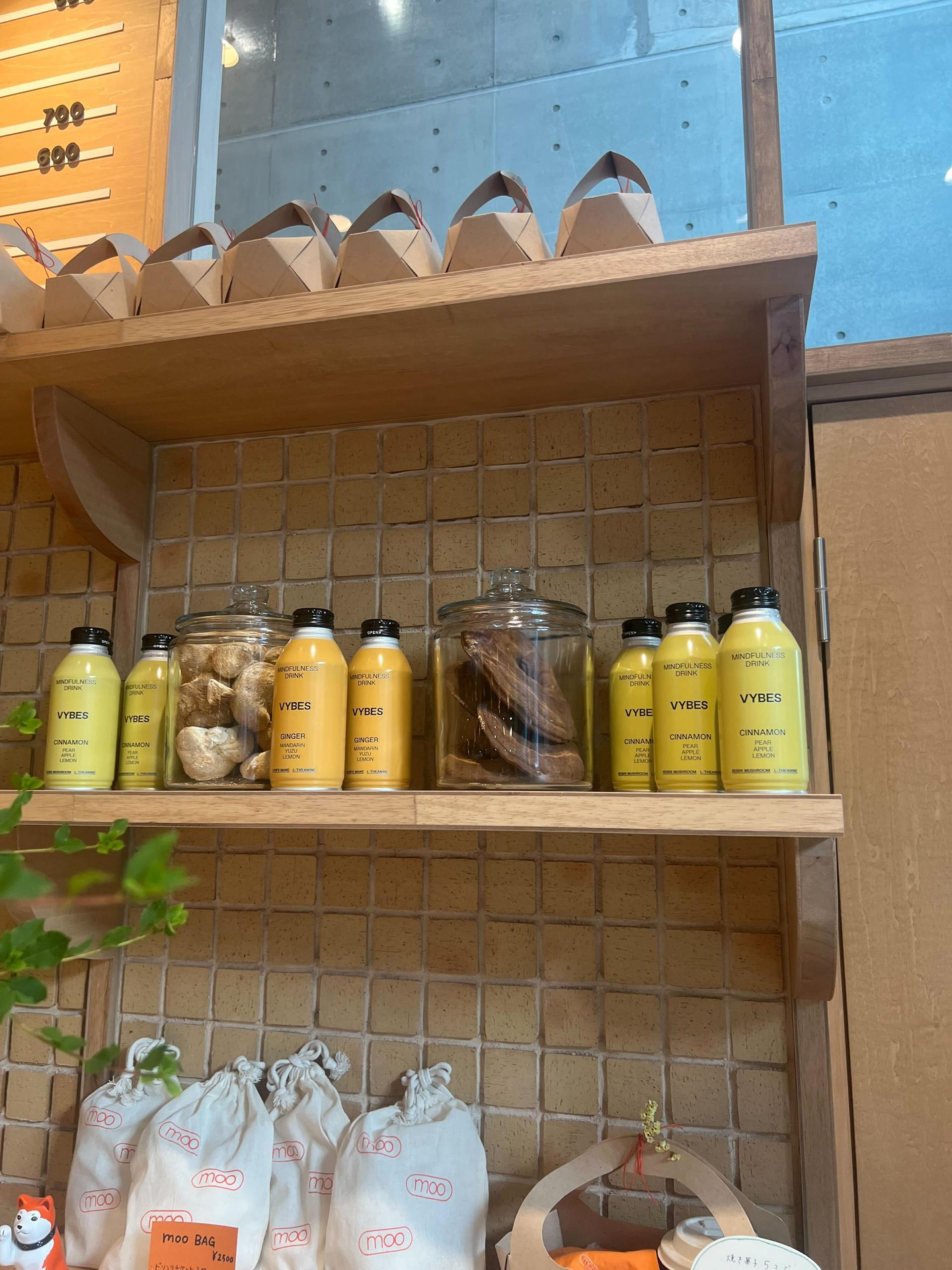 店内の至る所にVYBES缶が置かれ、mooの店内と相性よく馴染んでいます。