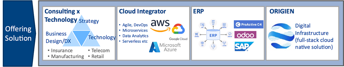 最後に、パクテラグループが総力を挙げて開発したクラウドネイティブのデジタルインフラストラクチャー “ORIGIEN”の活用です。弊社グループは中国国内において、銀行向けに最大手のシステムインテグレーターであり、中国の主要銀行は、メインフレームから弊社の分散型クラウドネイティブの銀行業務システムに移行しつつあります。このミッションクリティカルな銀行業務システムのインフラ・ミドルウェアなどのモジュールを切り出して、日本の顧客にご紹介・導入を進めてたく思います。例えばNLP/LLMなどによるAI大規模モデルや、AI画像認識などの機能であり、すでに引き合いも多くあります。グループの知財ともいえるORIGIENがお客様の要望にヒットするならば、それはまさに我々にしかできない提案だと自負しています。