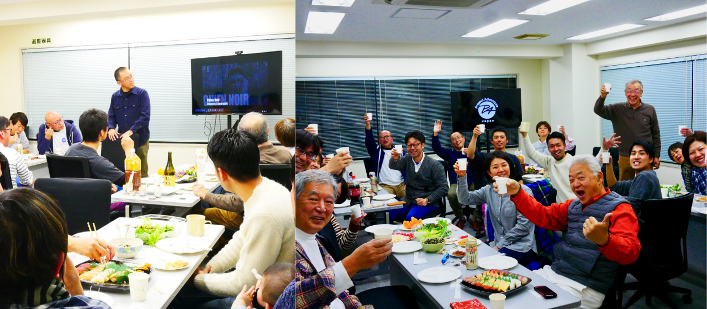 パーティでは、ちゃっきーによるPAJ紹介が行われました。PAJの今の状況、これからやろうとしていることなどをスライドを交えて紹介しました。私たちが行っている、プログラム以外のことも知ってもらえるよい機会でした。