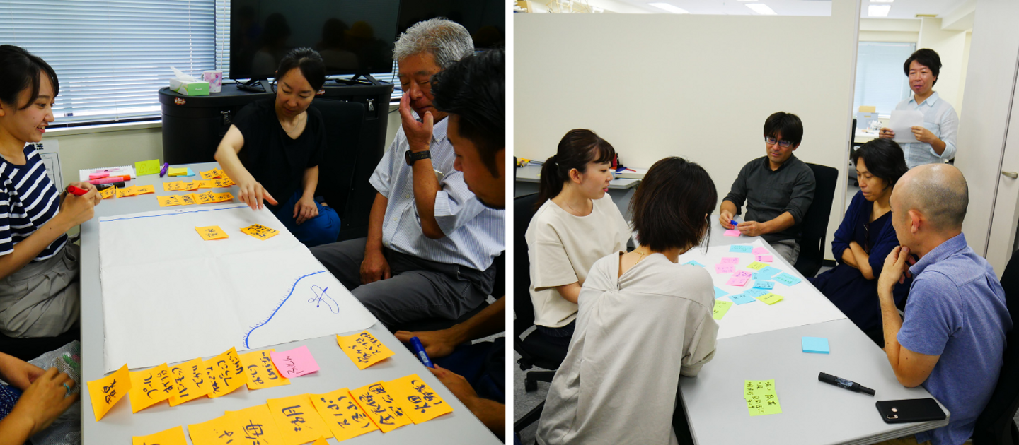 最初は大きいなと思っていた模造紙がみんなのアイデアで埋め尽くされ、紙が小さくなっていくようにも見えました。