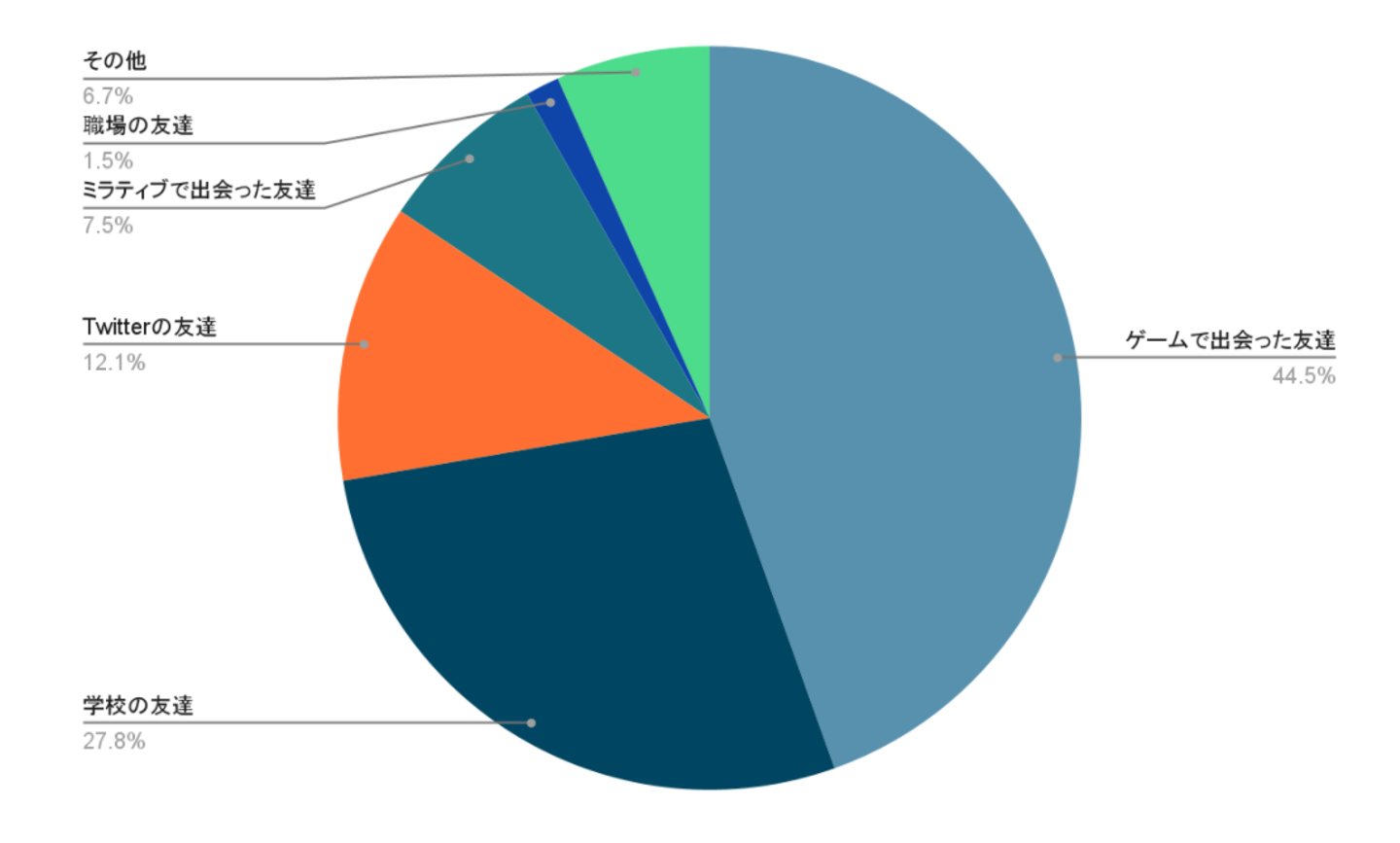 パラレルユーザー3,000人に対して行った調査からも、オンライン上で出会った友達と遊んでいるユーザーがかなり多いことが分かります。