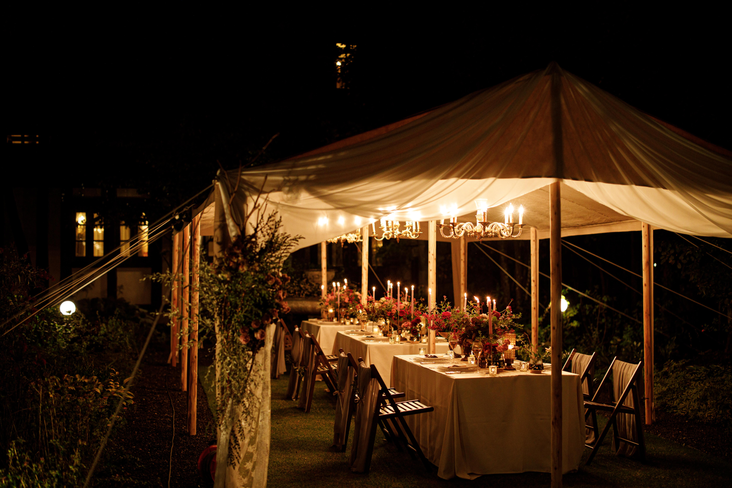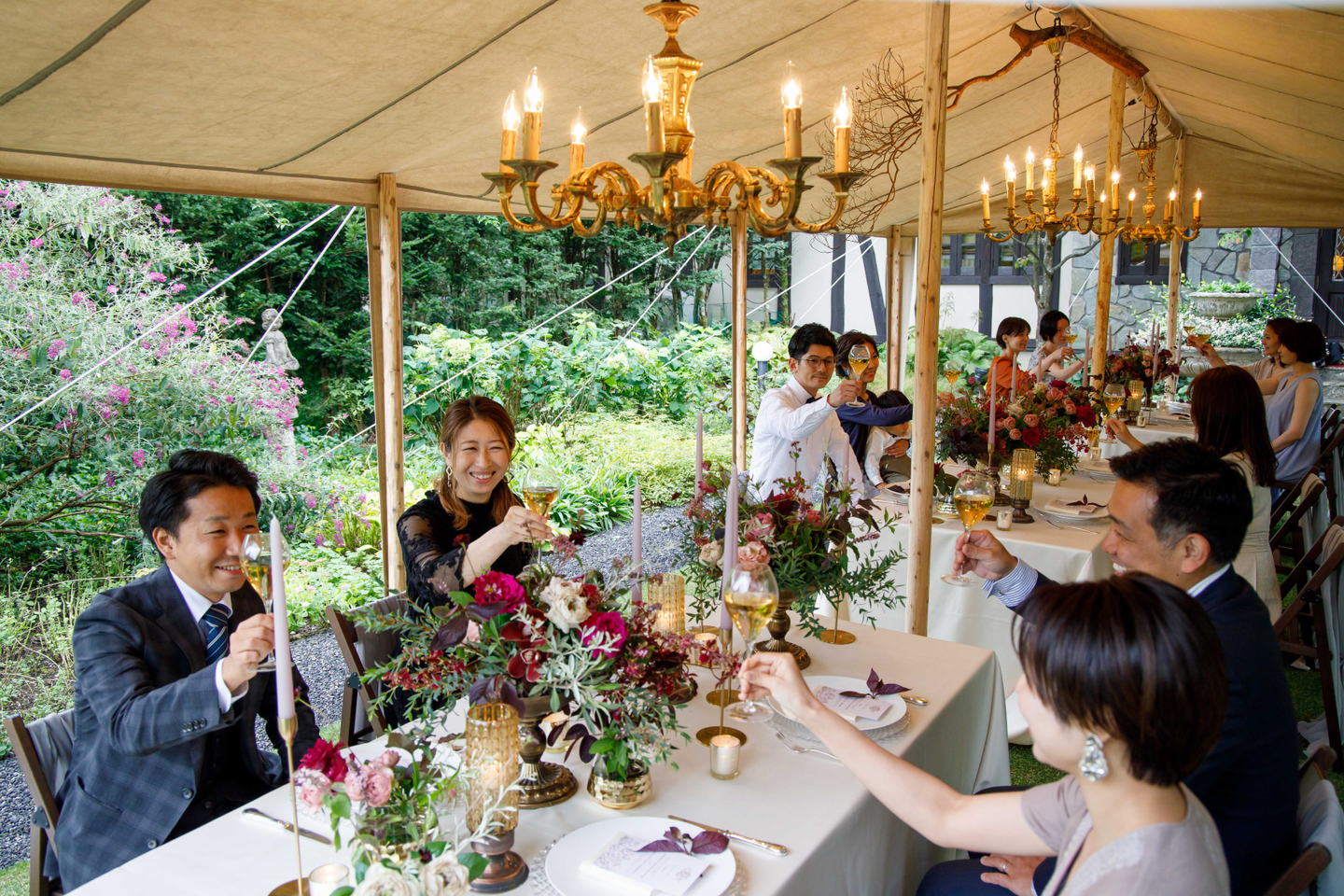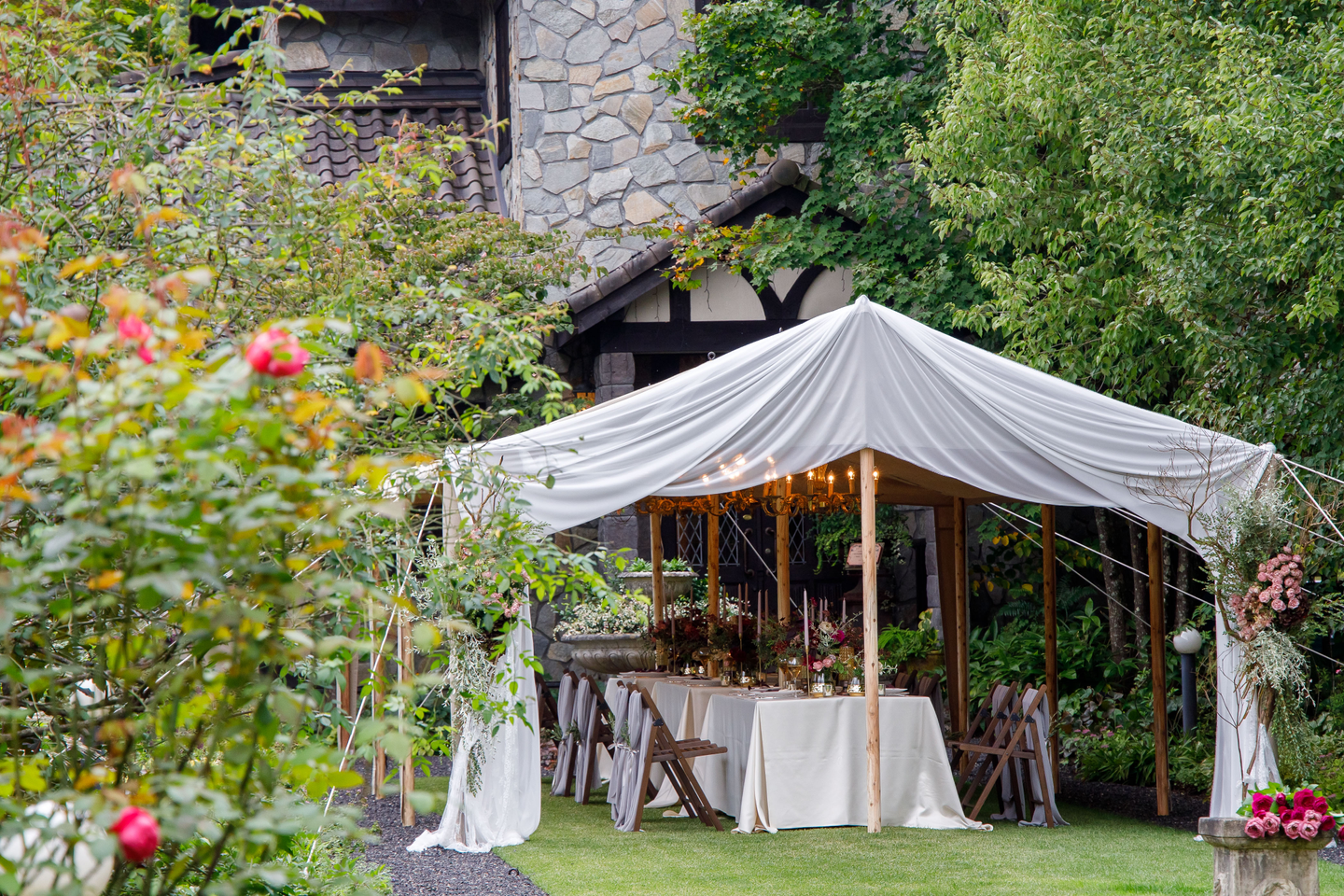 海外でのパーティーのように慌ただしい進行に追われることなく素敵なお庭に囲まれた場所でとにかくゆっくり結婚式前後のステイの時間と挙式・パーティーをお楽しみいただきたい思いで、今回テント制作に踏み切りました。