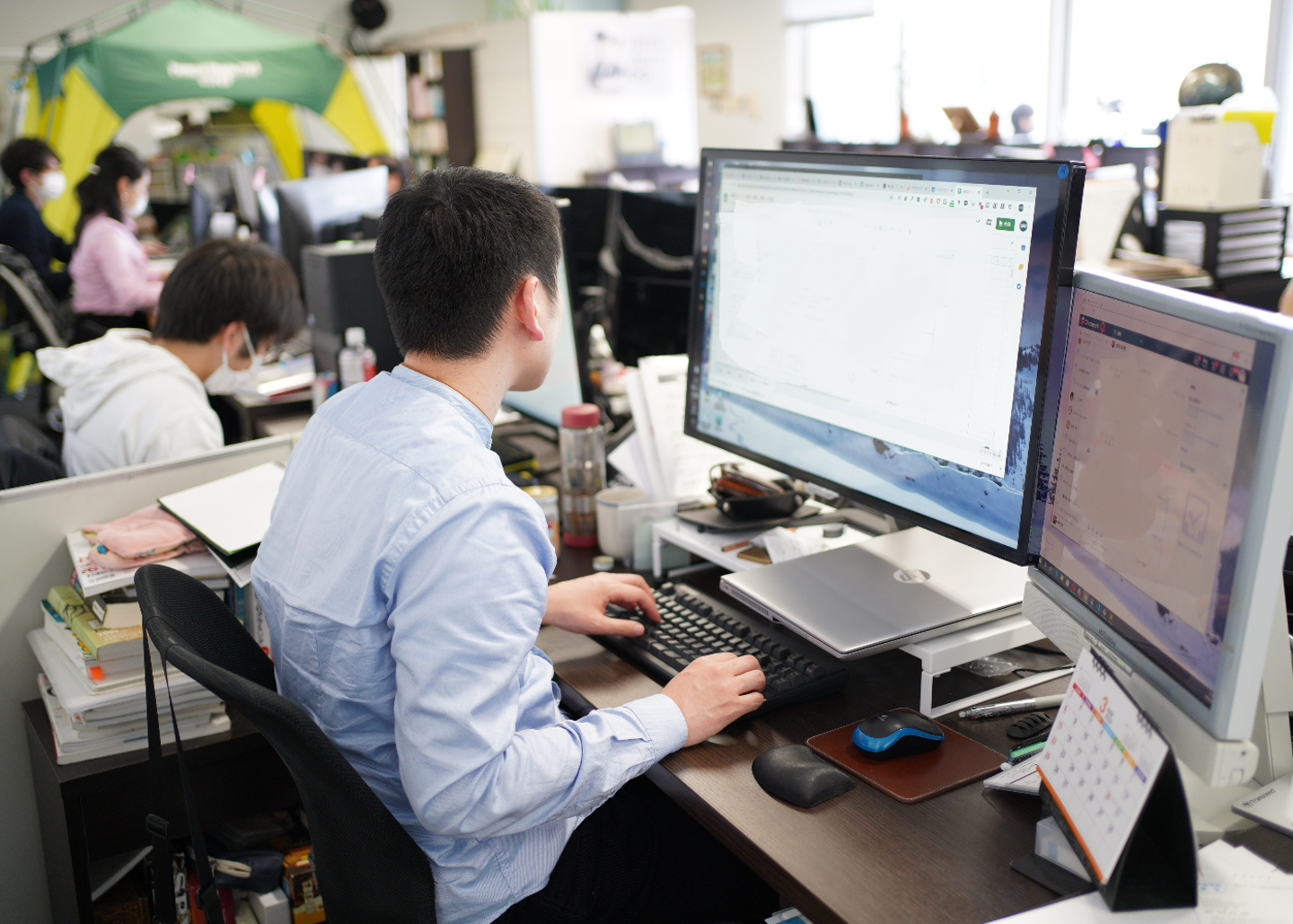 また、社内の業務管理ツールや社内情報システム・フロントエンドのコーディングなどサーバー・インフラを主としてフルスタックに動いています。