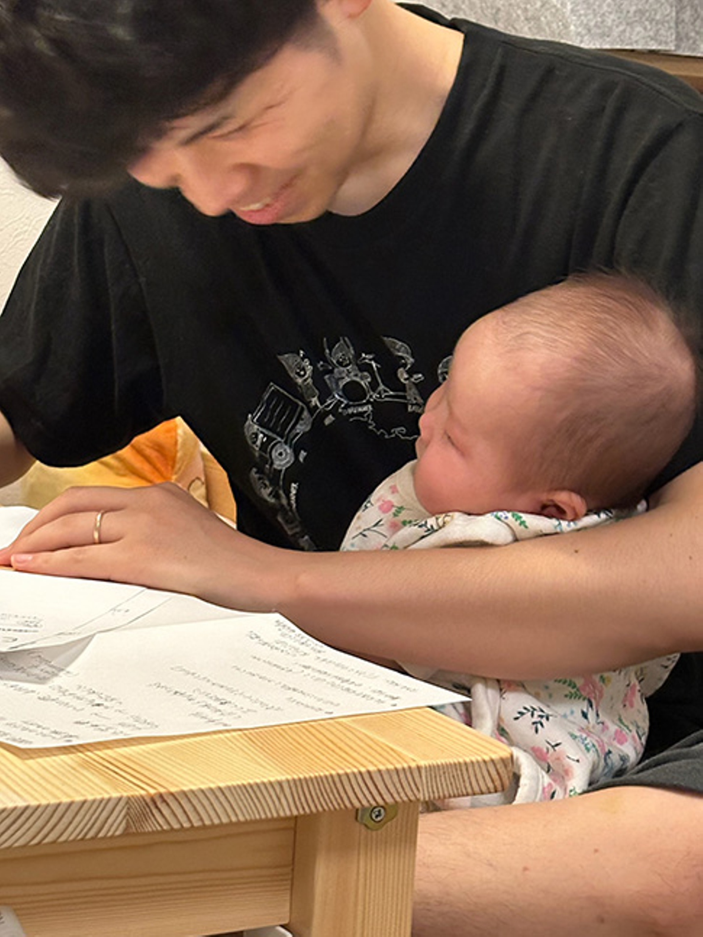 とにかく、不安なことや困ったことがあったら、妻と2人ですぐに相談できるのが育業のいいところですね。一番大変な時期に、妻が1人で判断して動かないといけない状況にならなくて良かったなと思います。